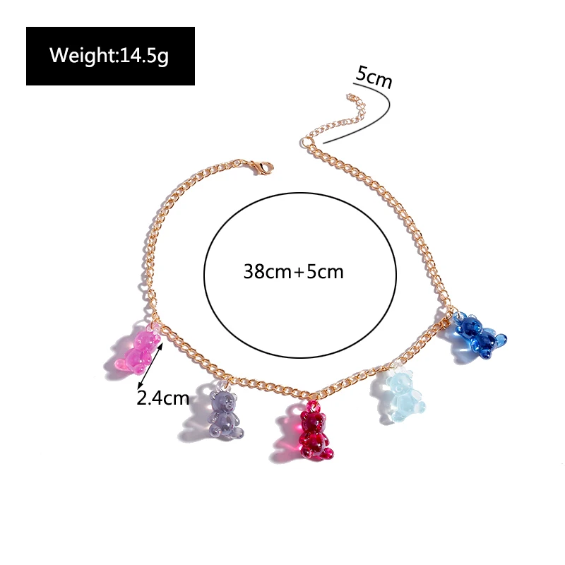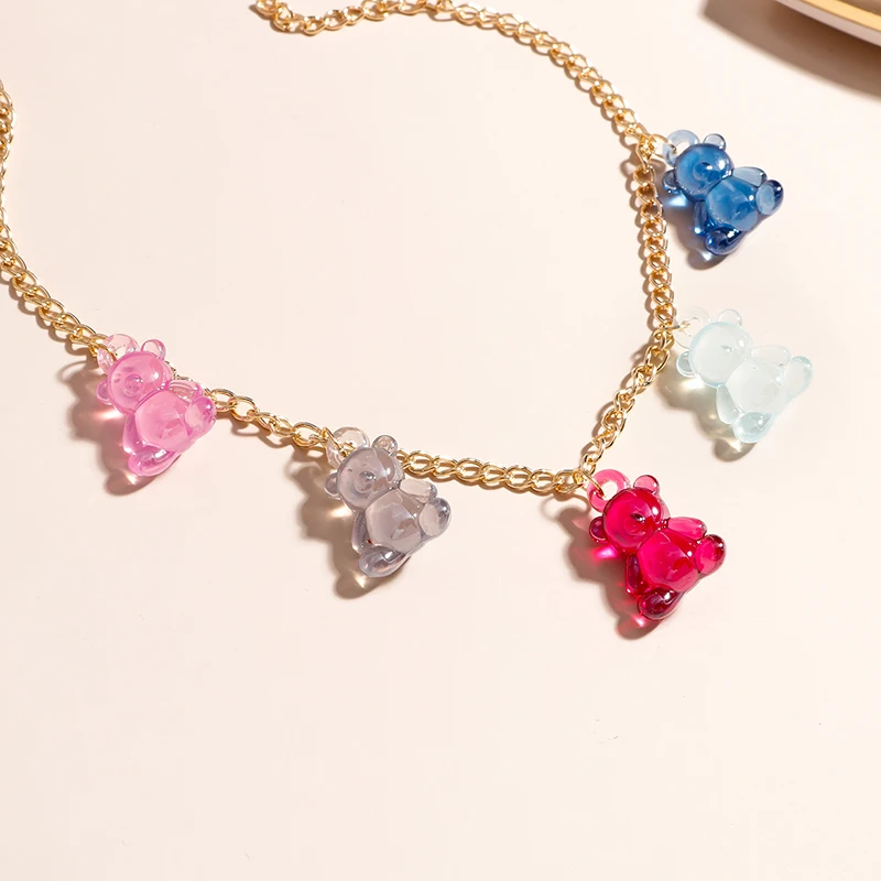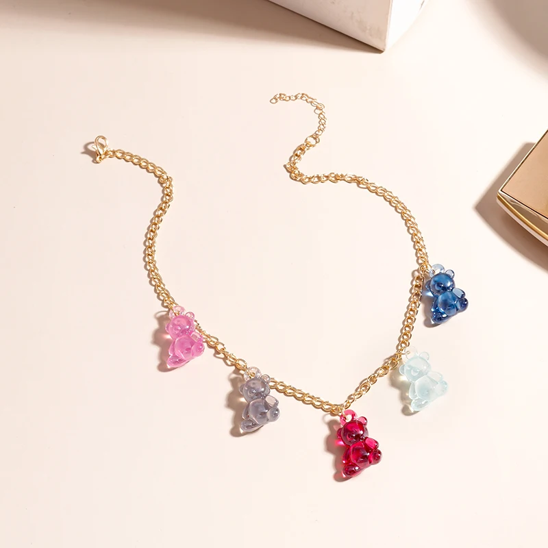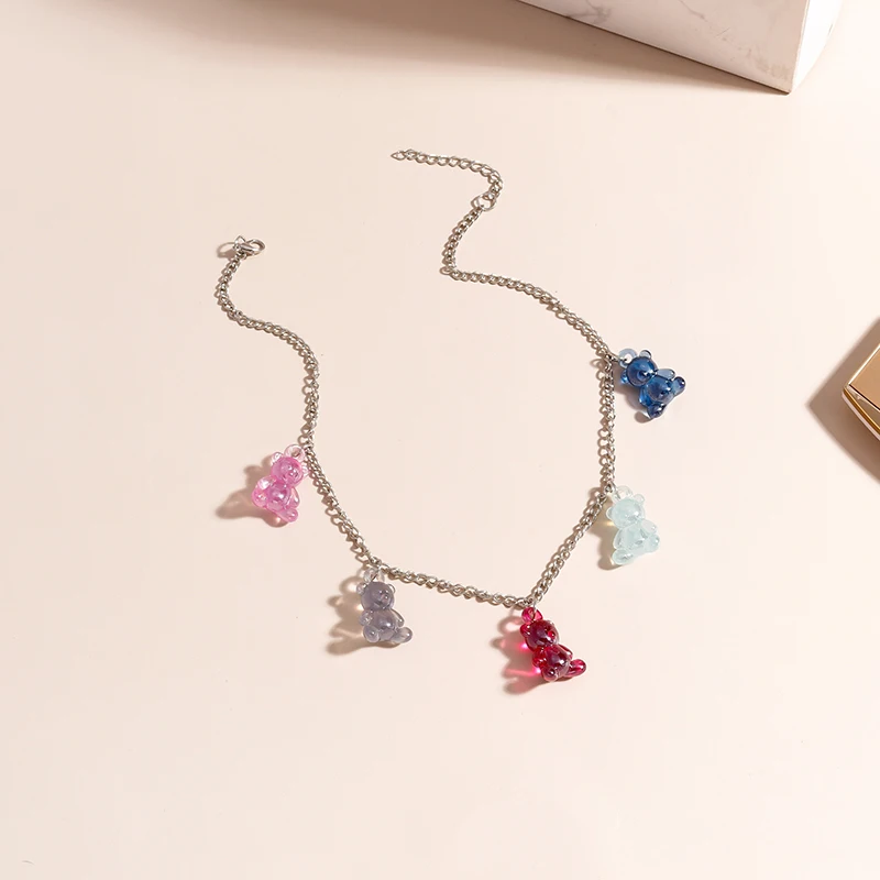 Jelly Colors Bears Necklaces for Women Bears Tassel Cold Silver Color Chain Choker Necklace Jewelry Gifts