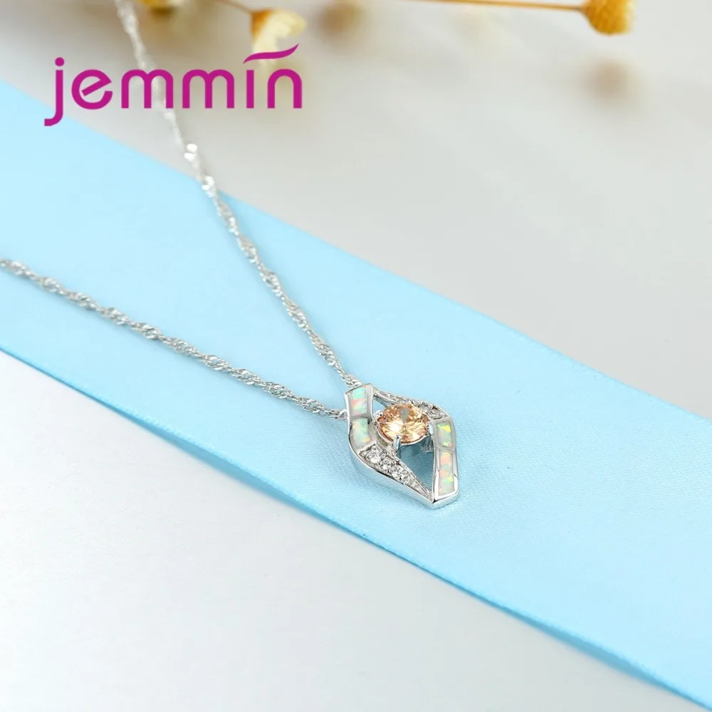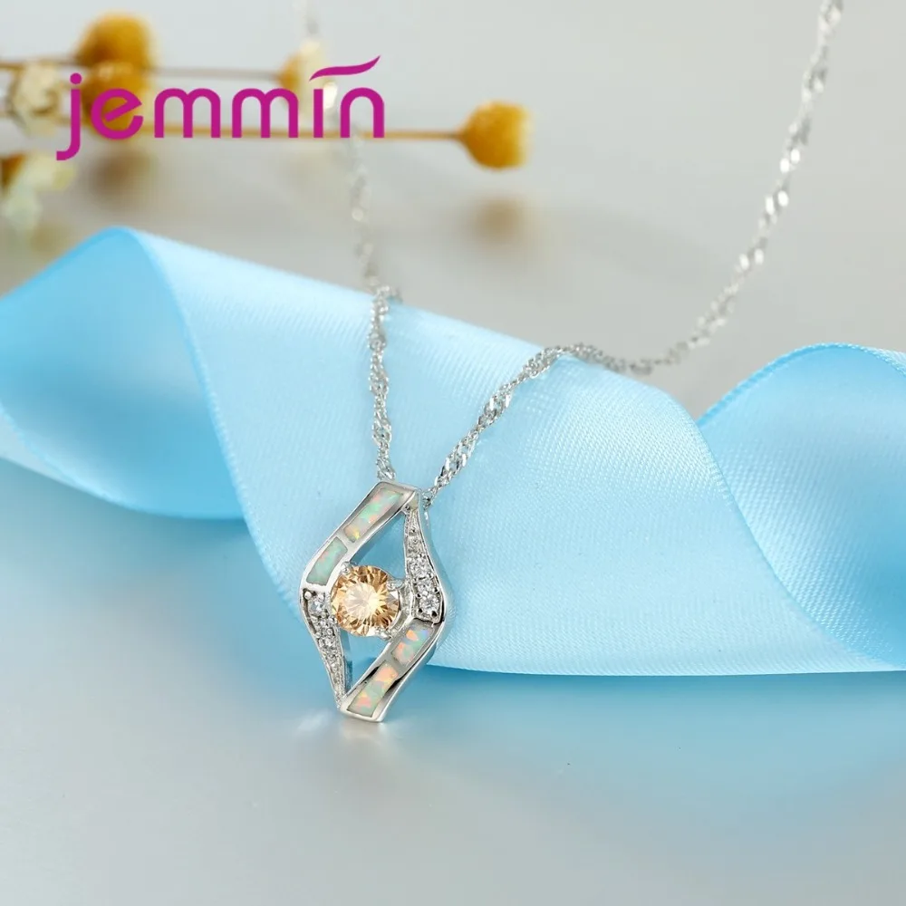 2 Colors Fine White Opal 925 Sterling Silver Crystal Pendants Necklaces For Women Wedding Party Statement Necklace Bijoux