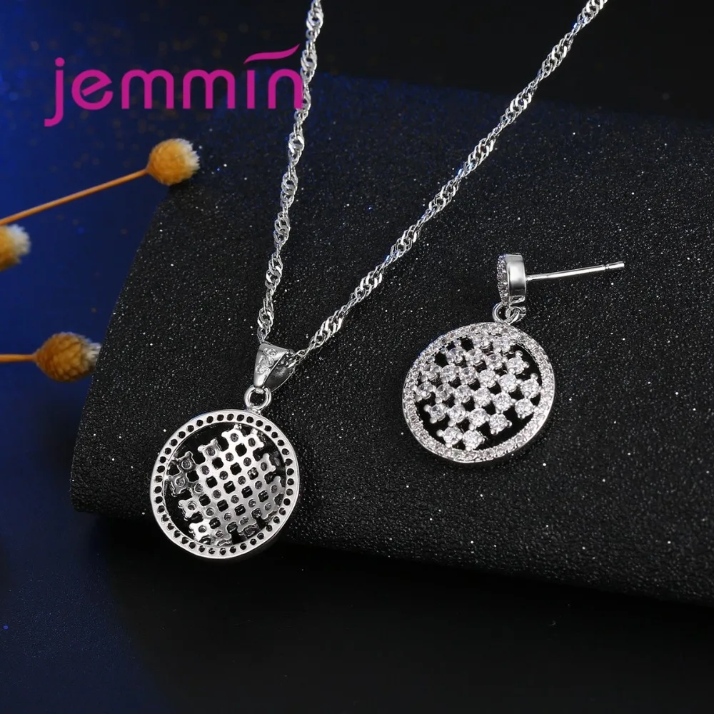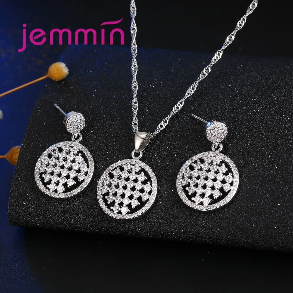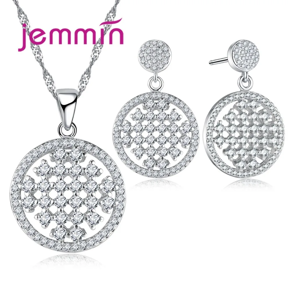 2020 Vintage Hollow Out CZ Crystal 925 Sterling Silver Bridal Jewelry Sets For Wedding Pendant Necklace Earrings Bijoux