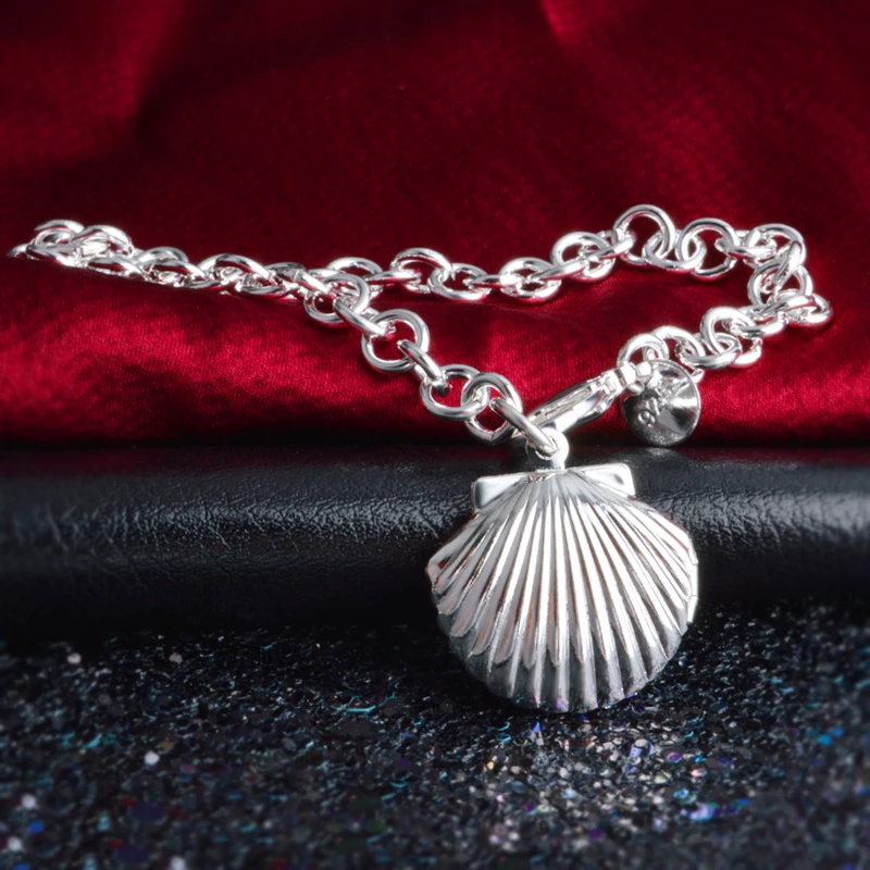 Charms Fashion 925 Sterling Silver Chunky Chain Bracelet Shell Shape Photo Locket Bracelets Elegant Fine Jewelry
