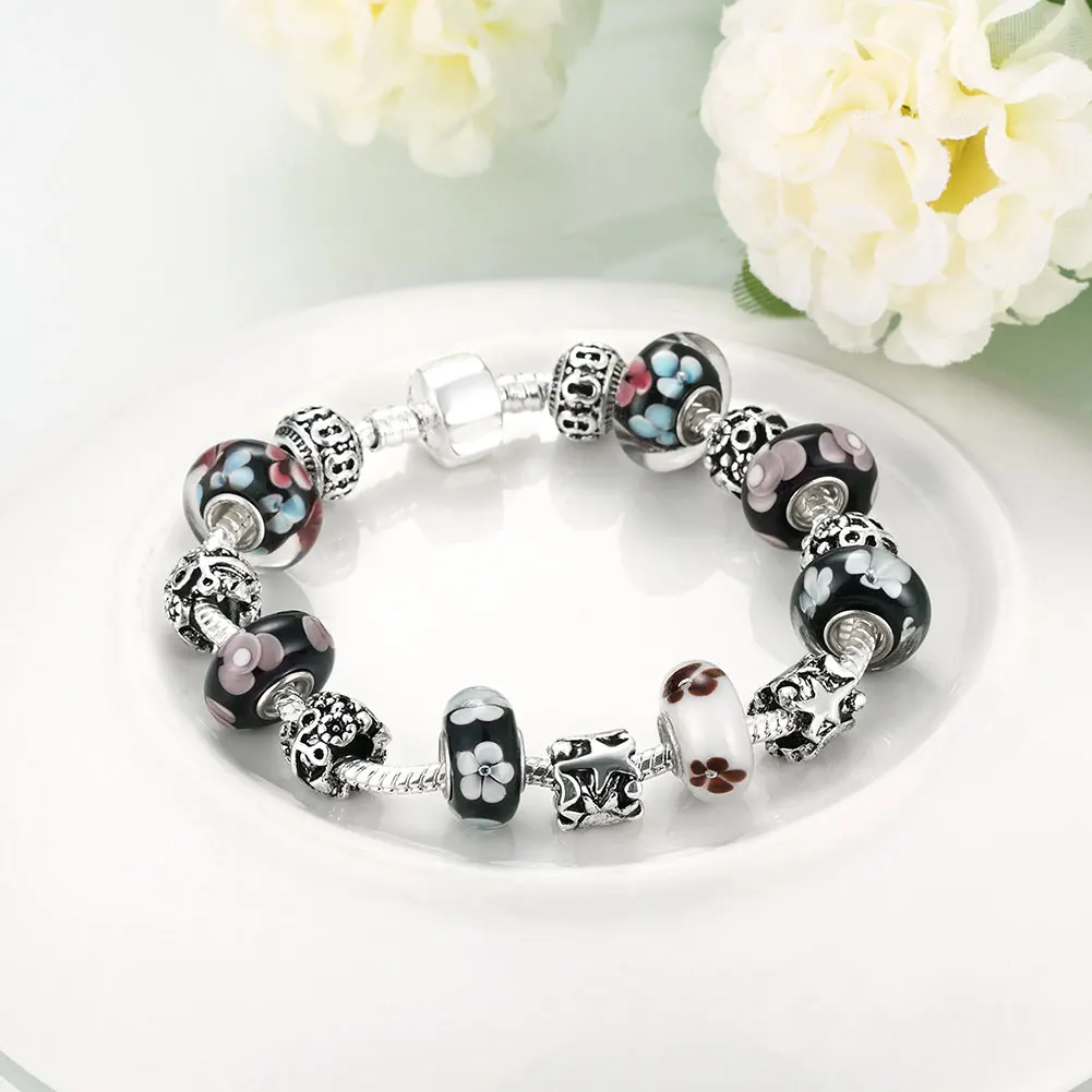 Classic Fashion Silver Bracelets Bangles Crystal Murano Beads Charm Bracelets For Women DIY Vintage Bead Bracelets