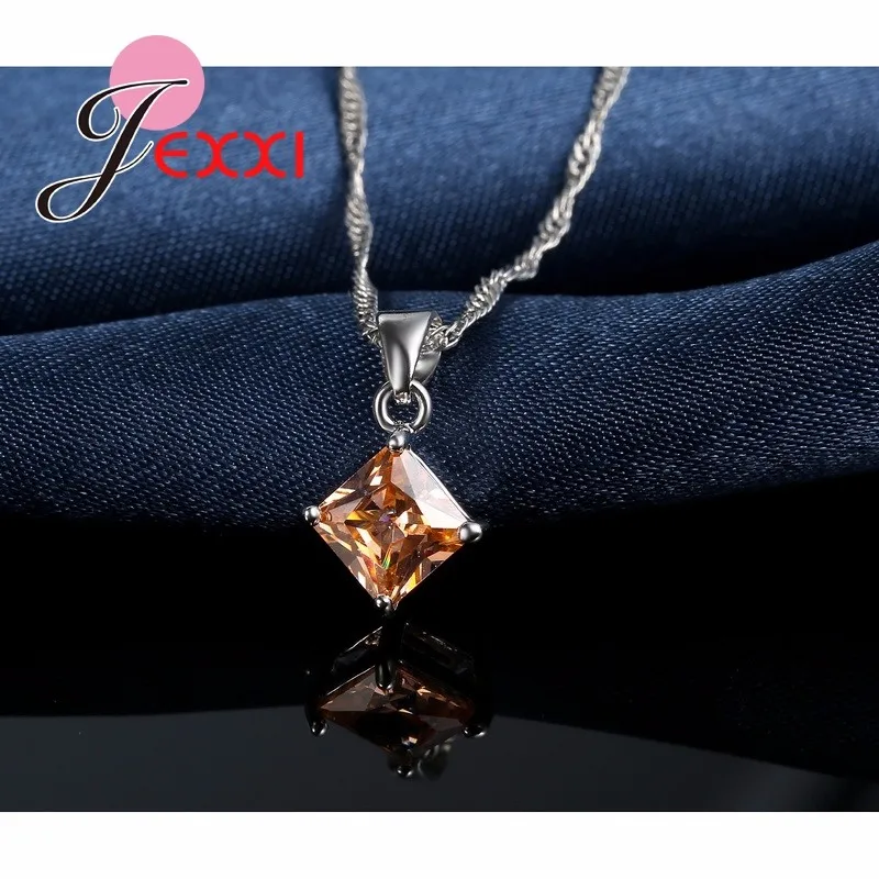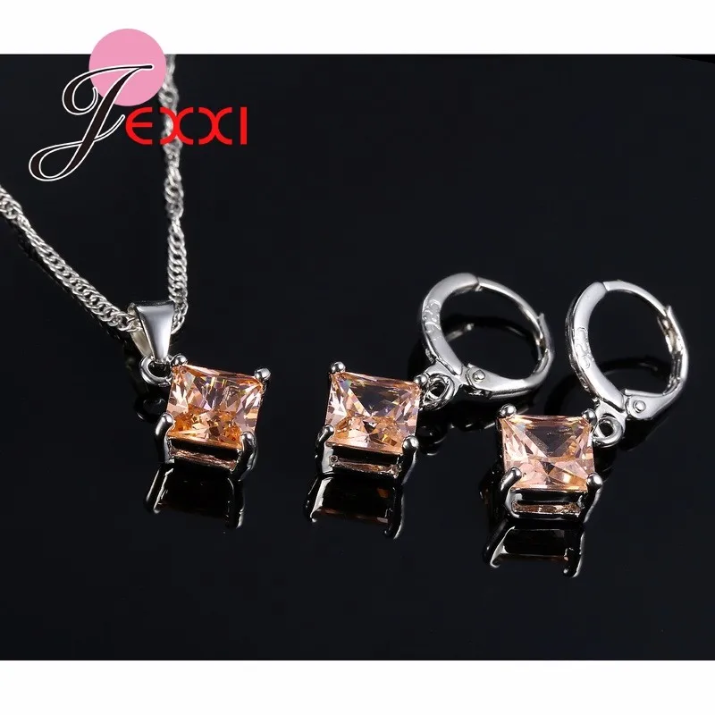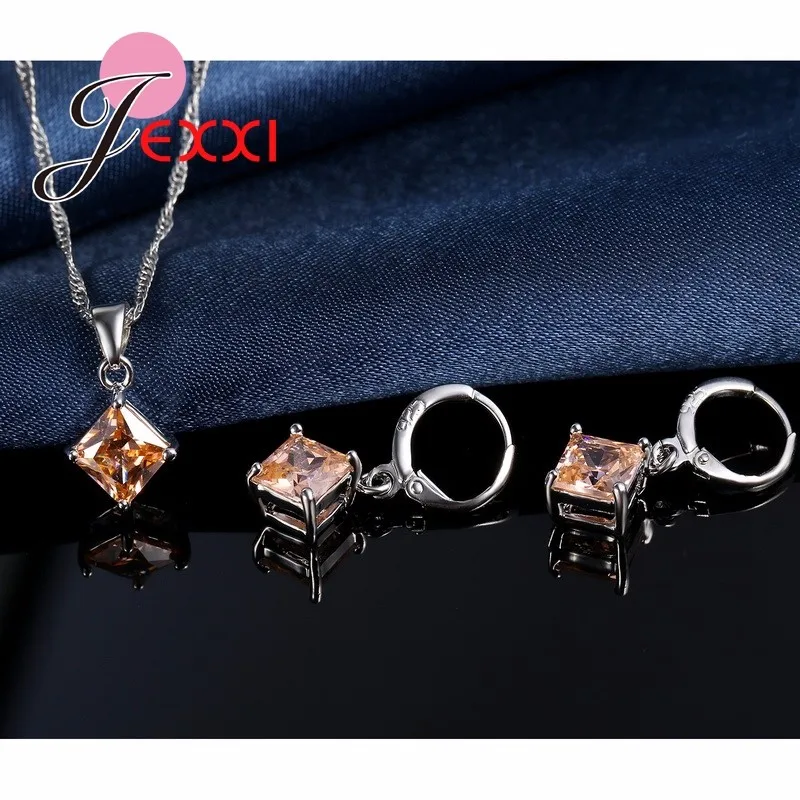 Exquistie Women Crytal Pendant Necklaces And Earring Set 925 Sterling Silver Bridal Wedding Jewelry Sets For Female Gift