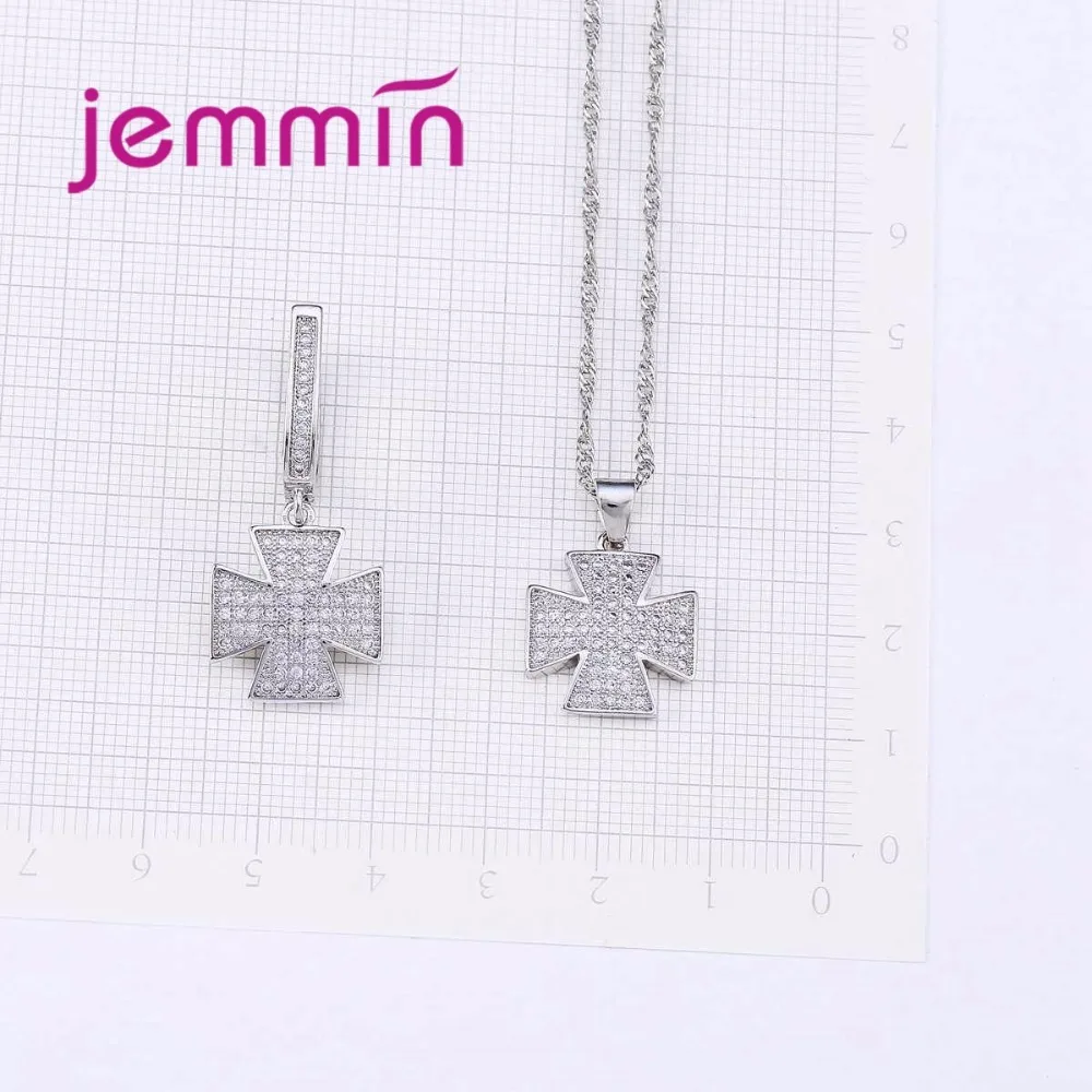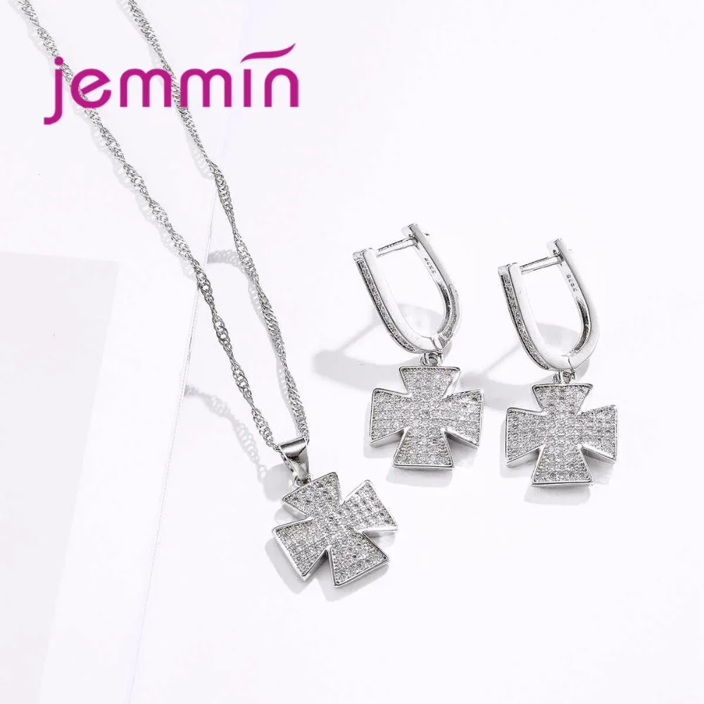 Fashion Wedding Jewelry Set White Crystal Geometric Necklace Earrings Set Charm 925 Silver Bridal Jewelry Sets