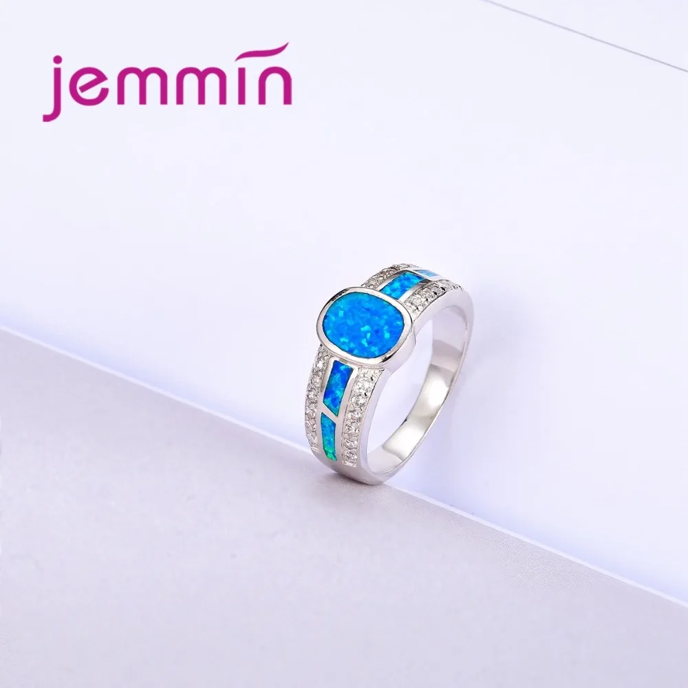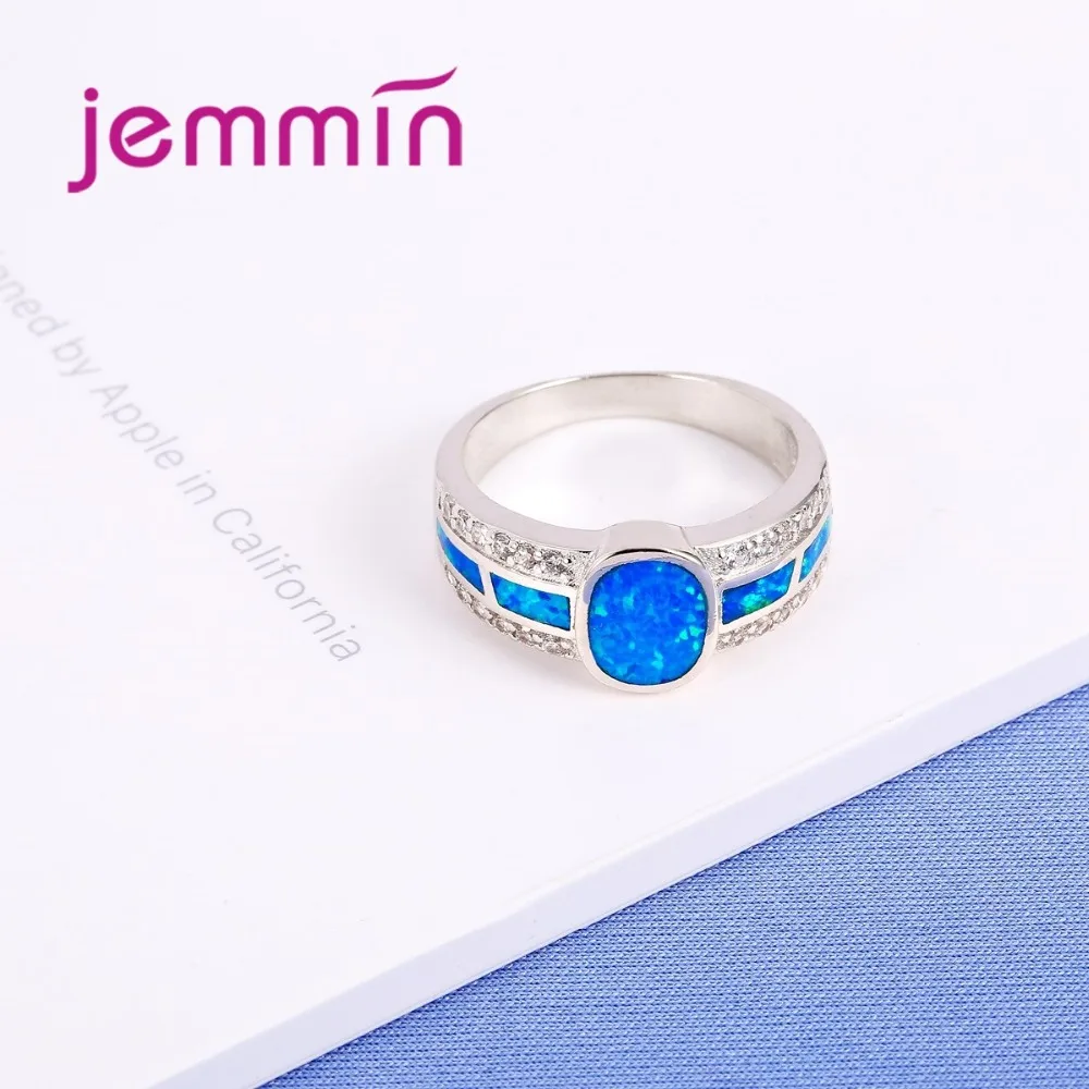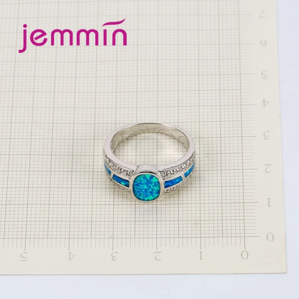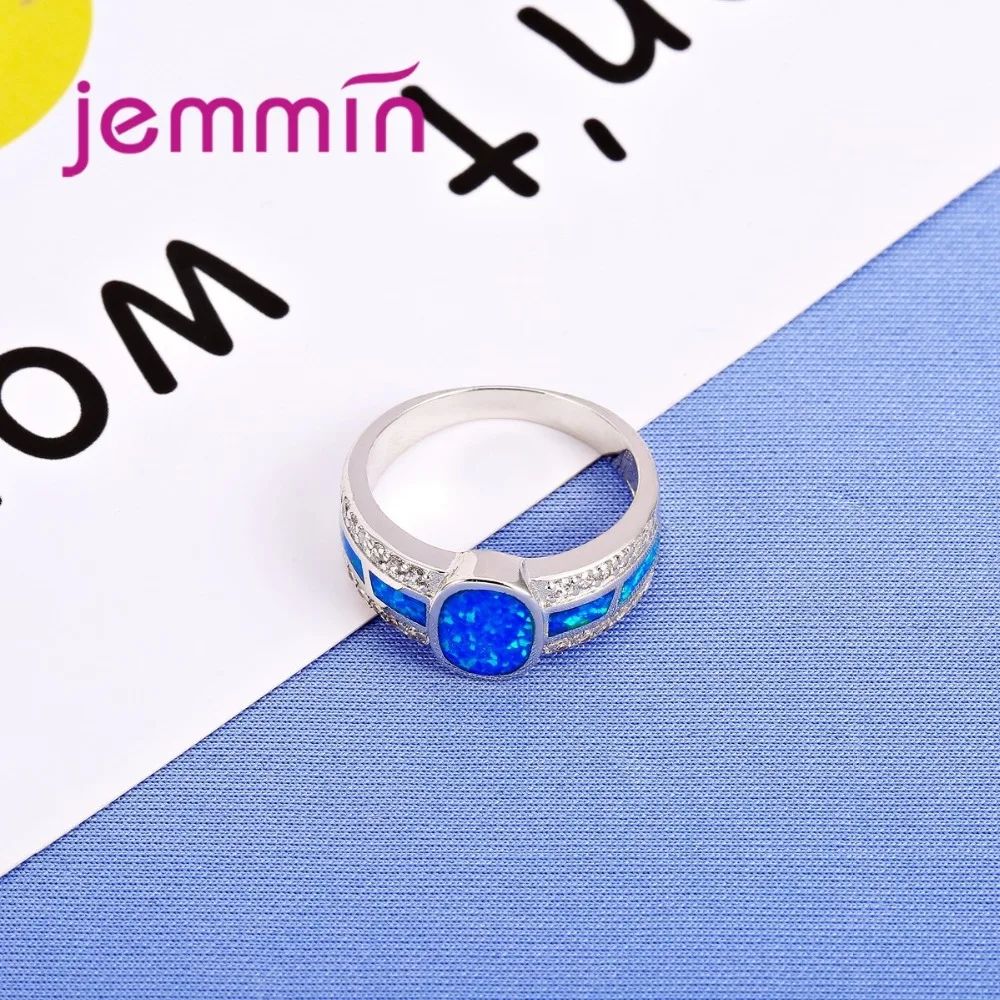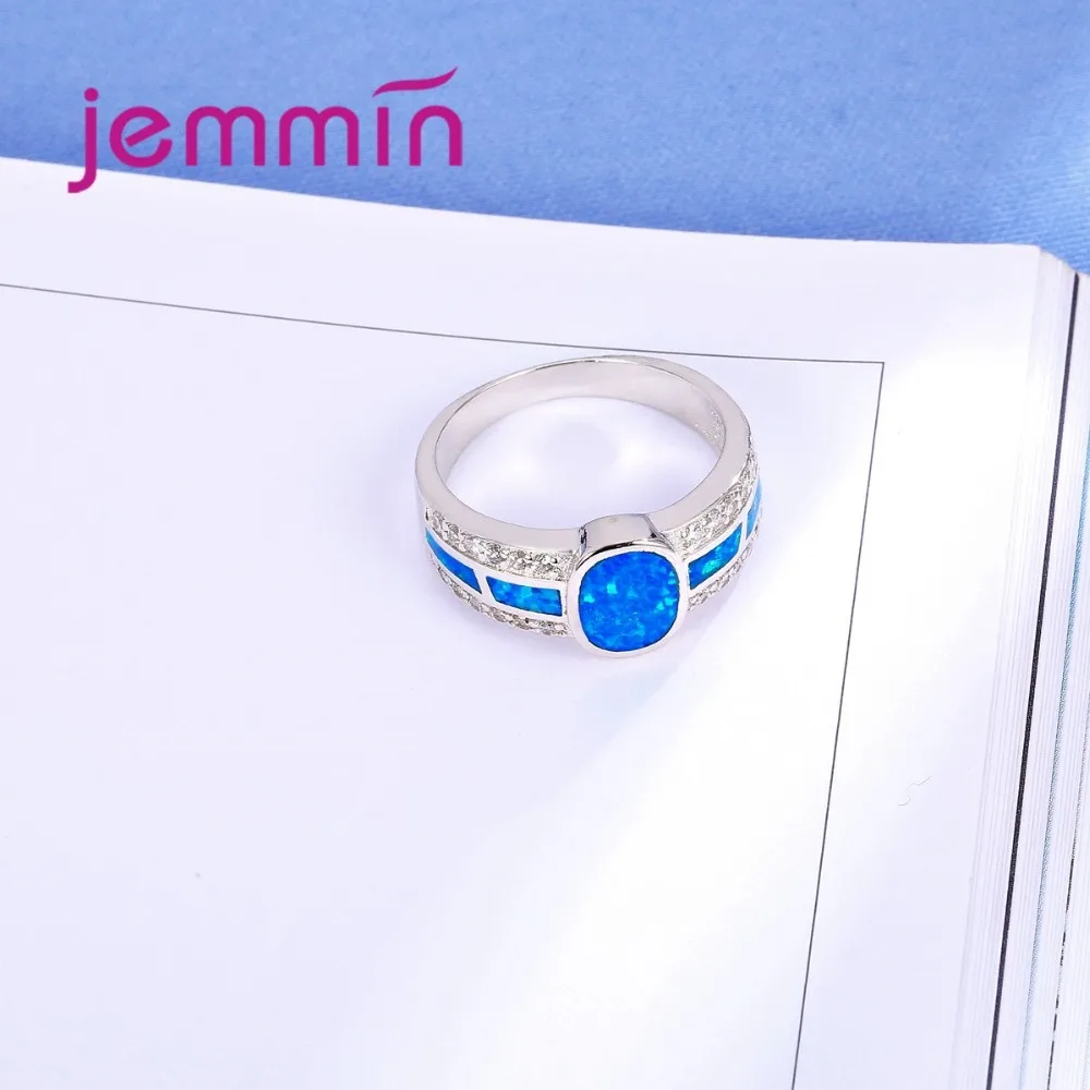 Fine 925 Sterling Silver Bridal Wedding Rings Jewelry Accessory With Clear Rhinstone Blur Fire Opal Anillos Bague