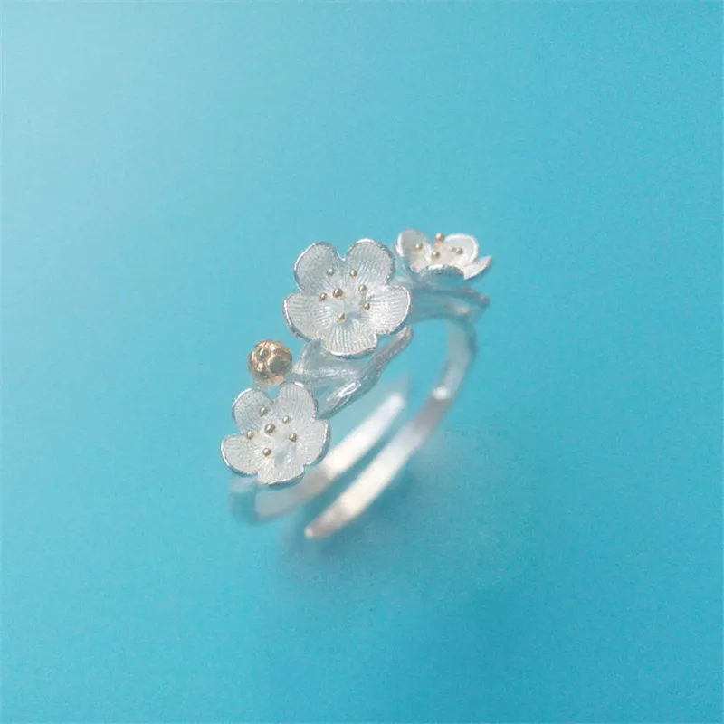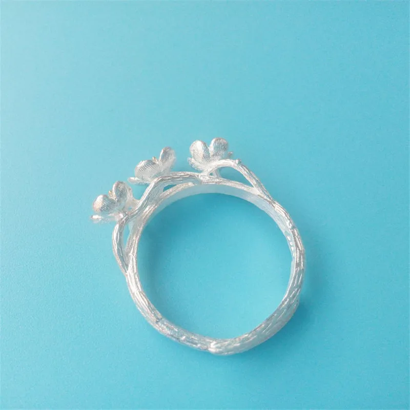 Retro 925 Sterling Silver Ring Adjustable Size Blossom Women Traditional National Style Silverware Ring Fine Jewelry