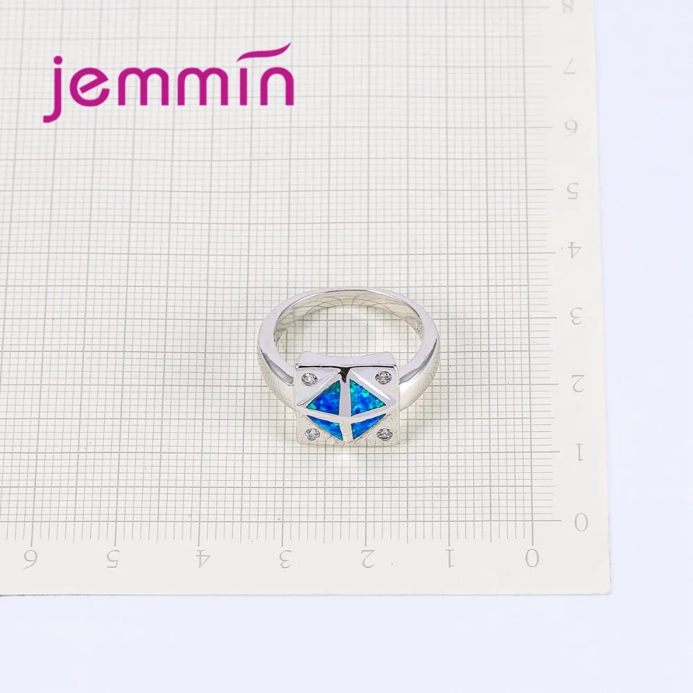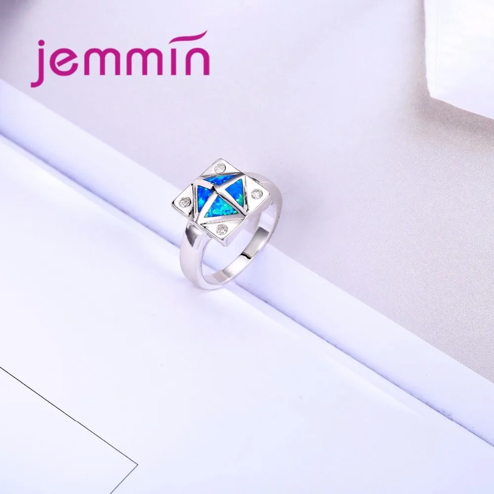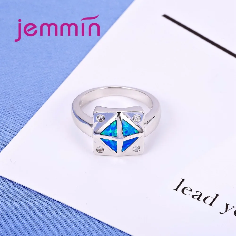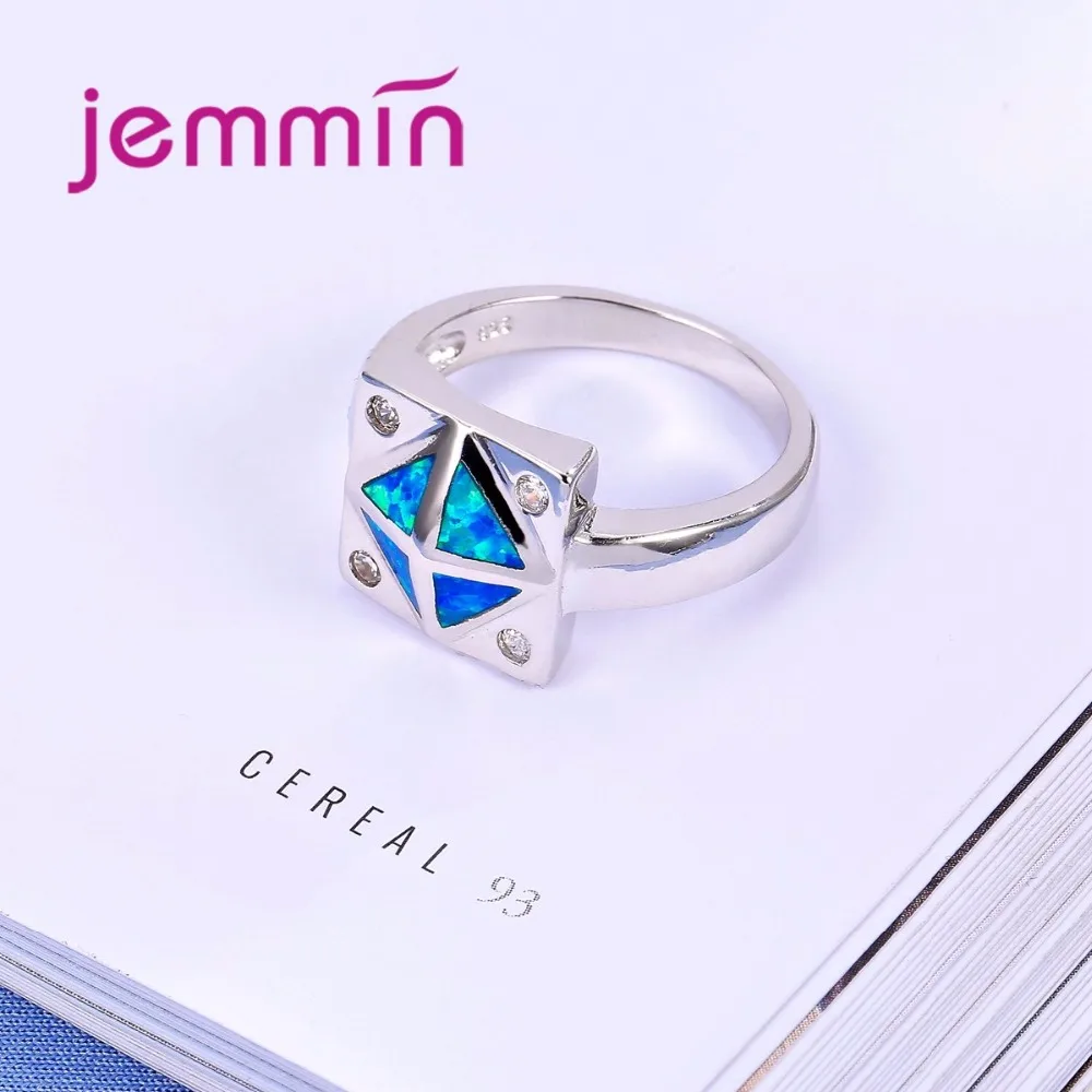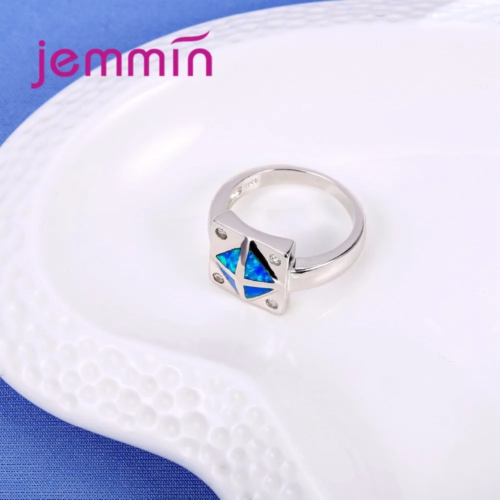 Square Blue Fire Opal Ring 925 Sterling Silver Wedding Rings For Women Bague Femme Fashion Jewelry Gift