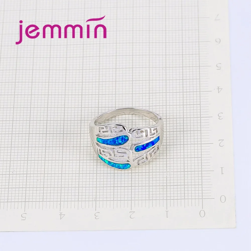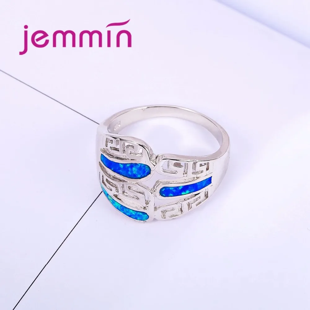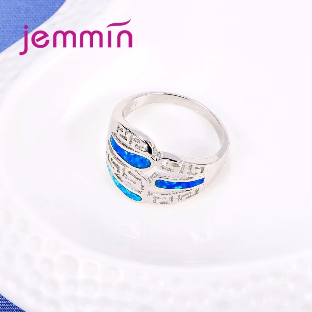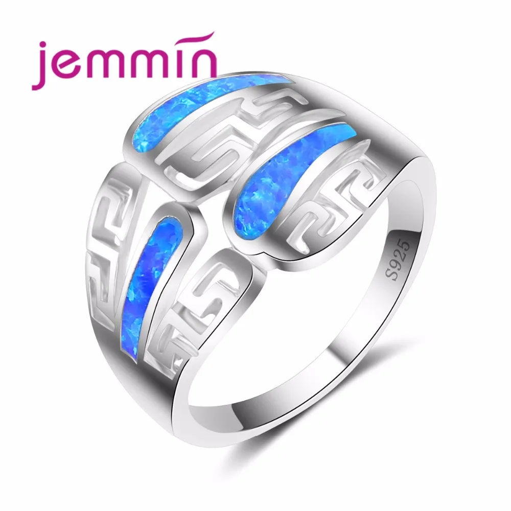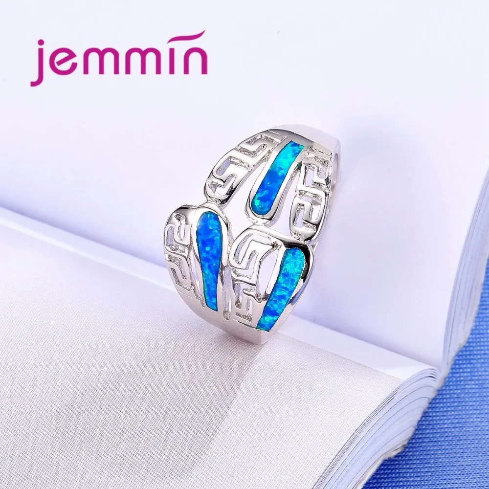 Vintage Women Rings For Party Jewelry Fine Accessory S925 Stamped Blue Fire Opal Sterling Silver Engagement Ring Female