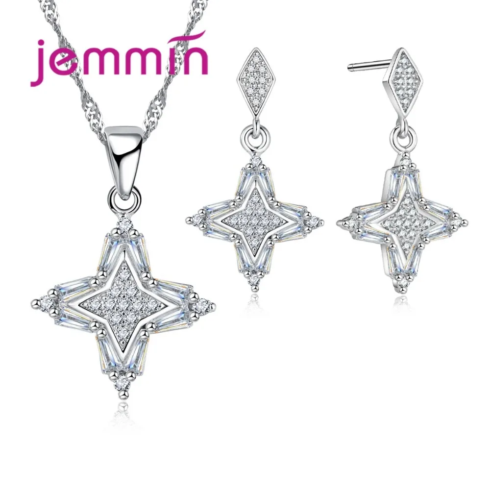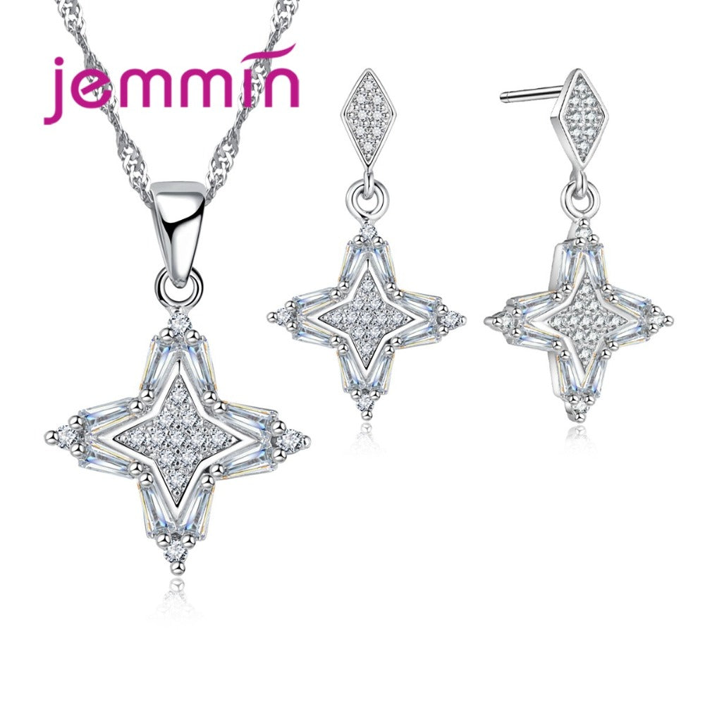 Women 925 Sterling Silver Set For Wedding Jewelry Accessory Fine Quality Cross CZ Crystal Pendant Necklace Sets For Bague