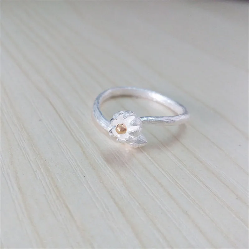 Women Silver Ring 925 Sterling Silver Jewelry with Buds Flower Opening Size Ring Female Creative Ethnic Fine Jewelry