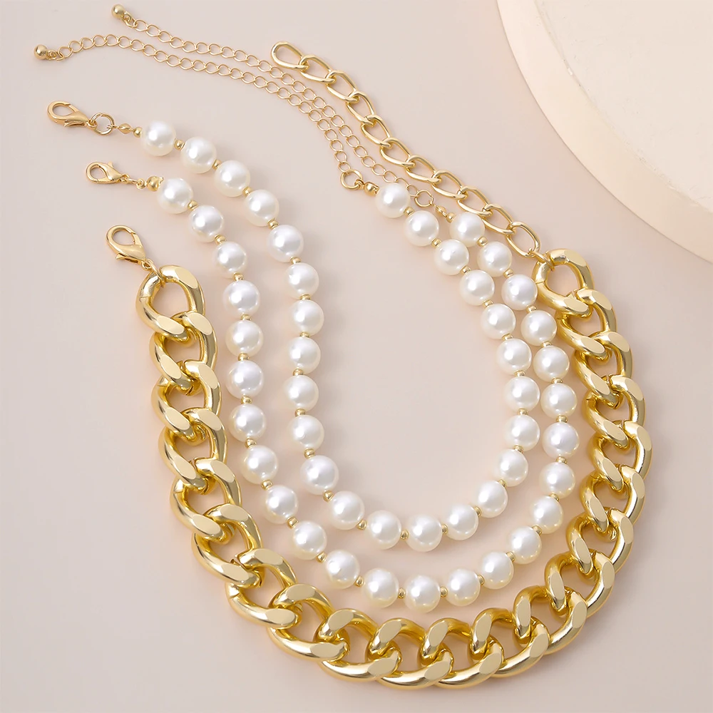 Jewelry Accessories Hyperbol Multi Layer Imitation Pearls Gold Color Alloy Chain Choker Necklace Women 2021 Elegant