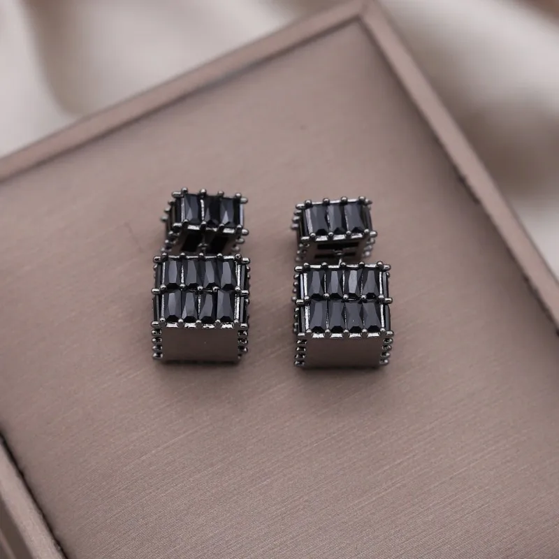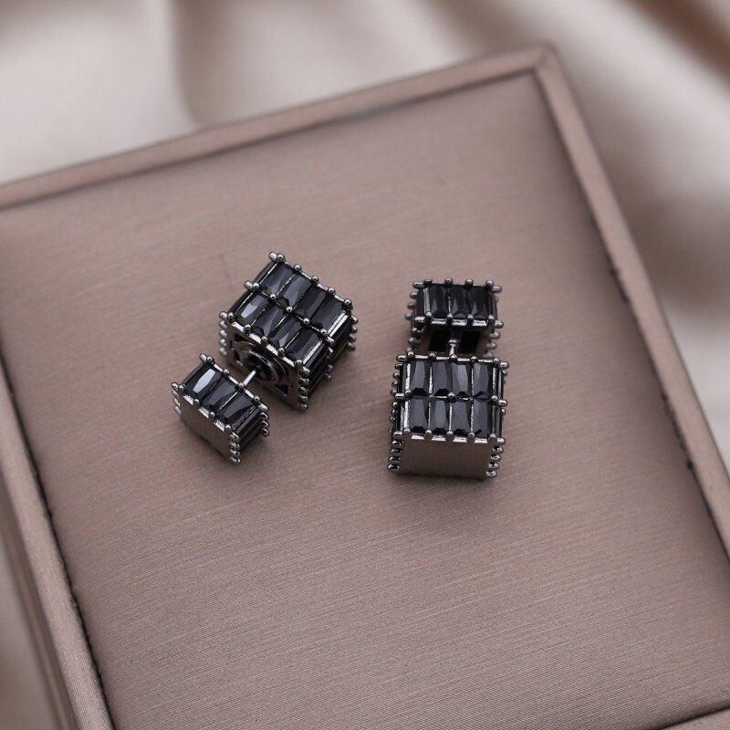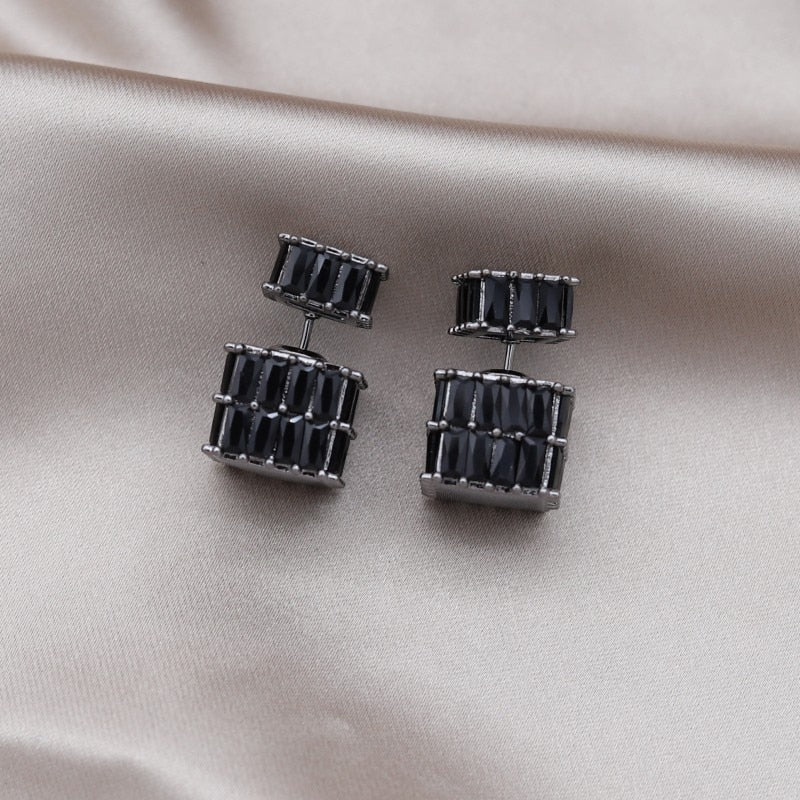 Jewelry in Korea Black Zircon Earrings at Front and Back Women's Daily Work Accessories