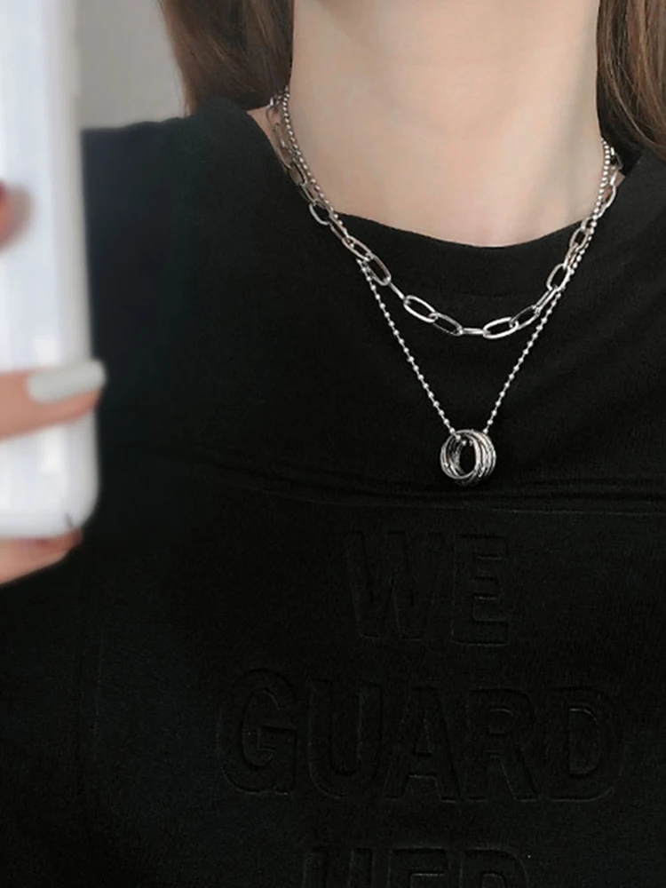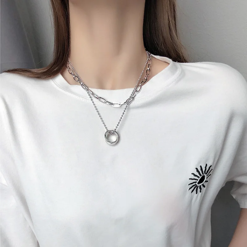 Jewelry Round Small Pendant Chain Around the Neck Gothic Style Multilayer Necklaces For Women Vintage Sweater Chokers