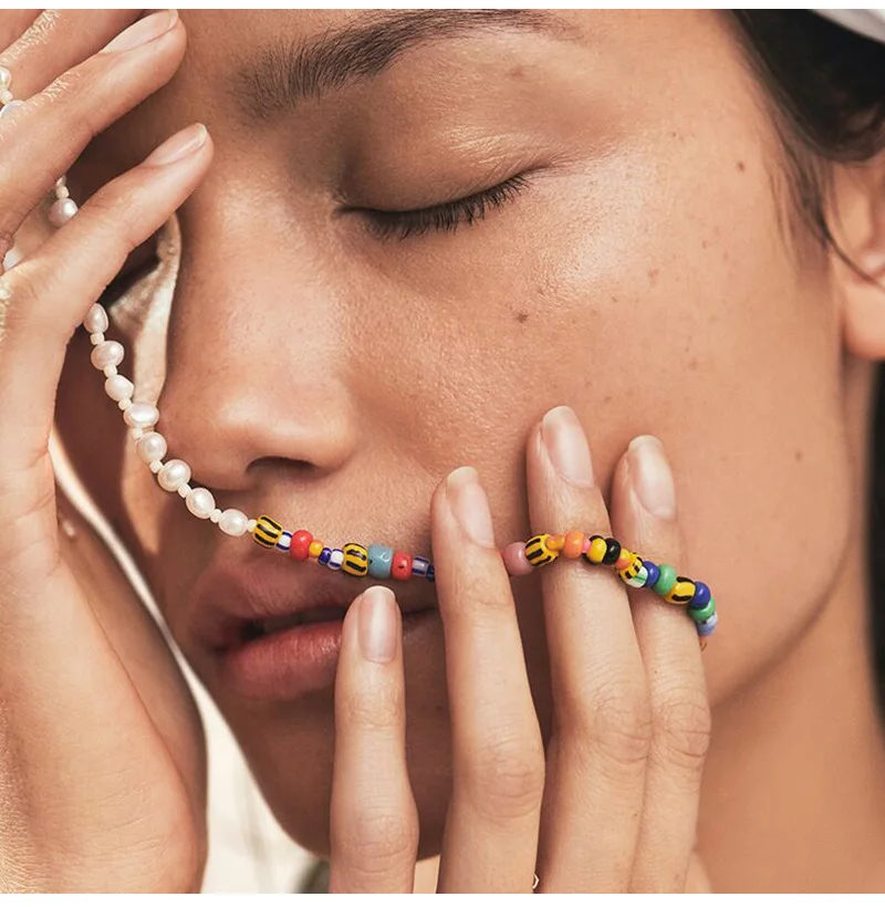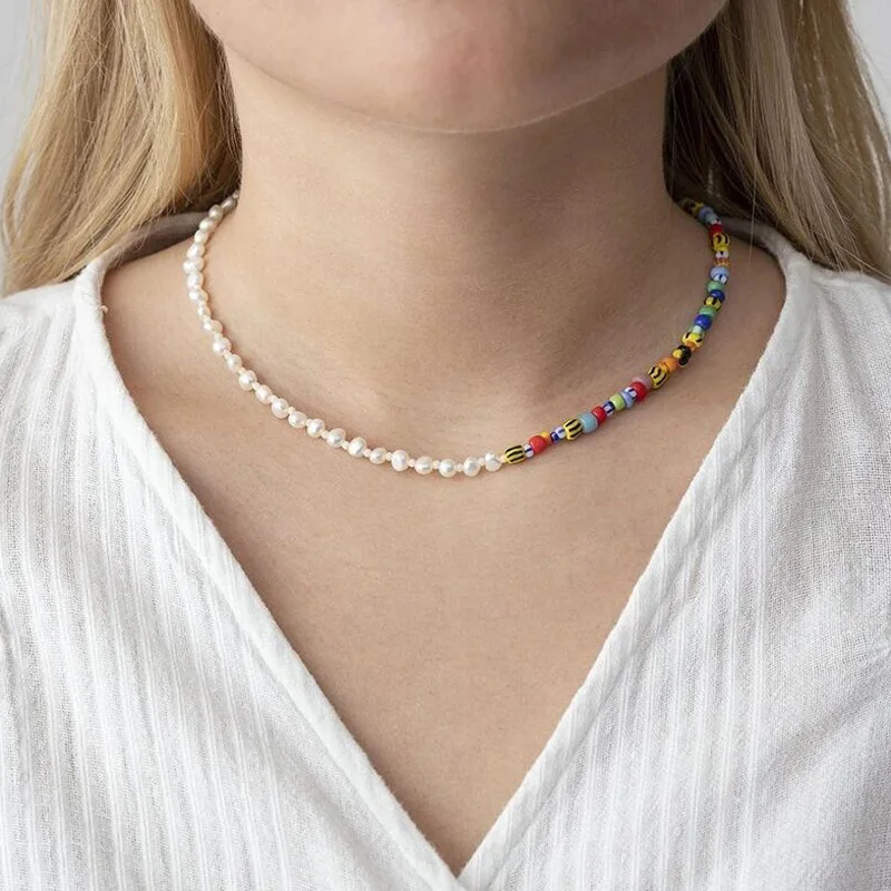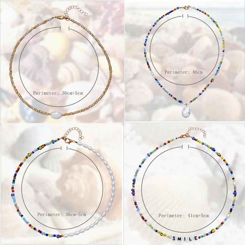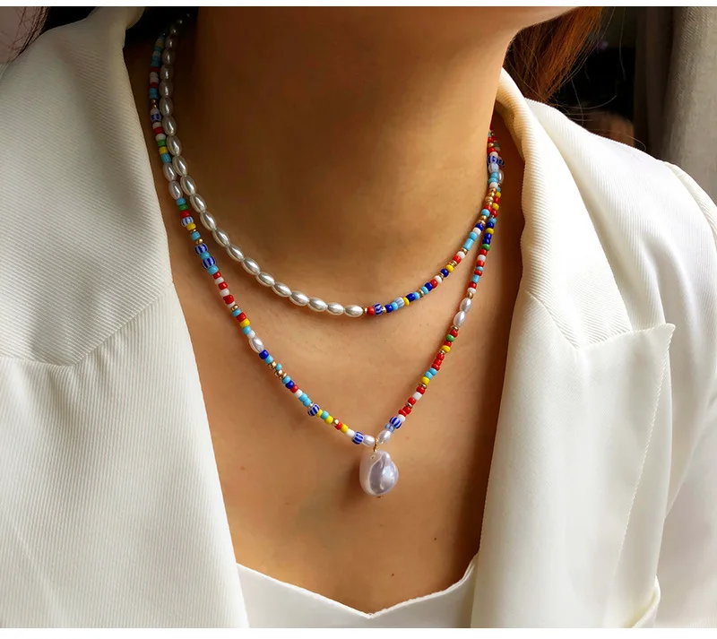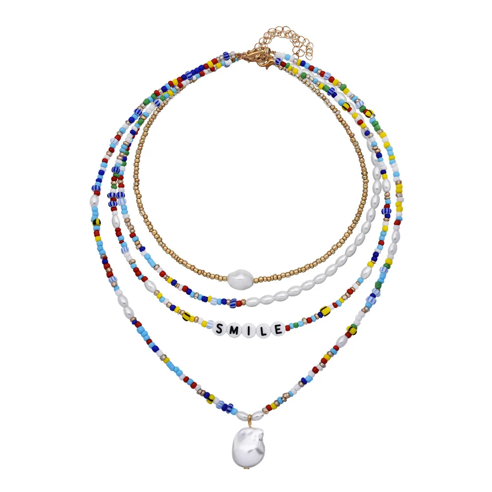 Jewelry shaped pearl letter clavicle chain multi-layer combination stacking colored millet bead women necklace female