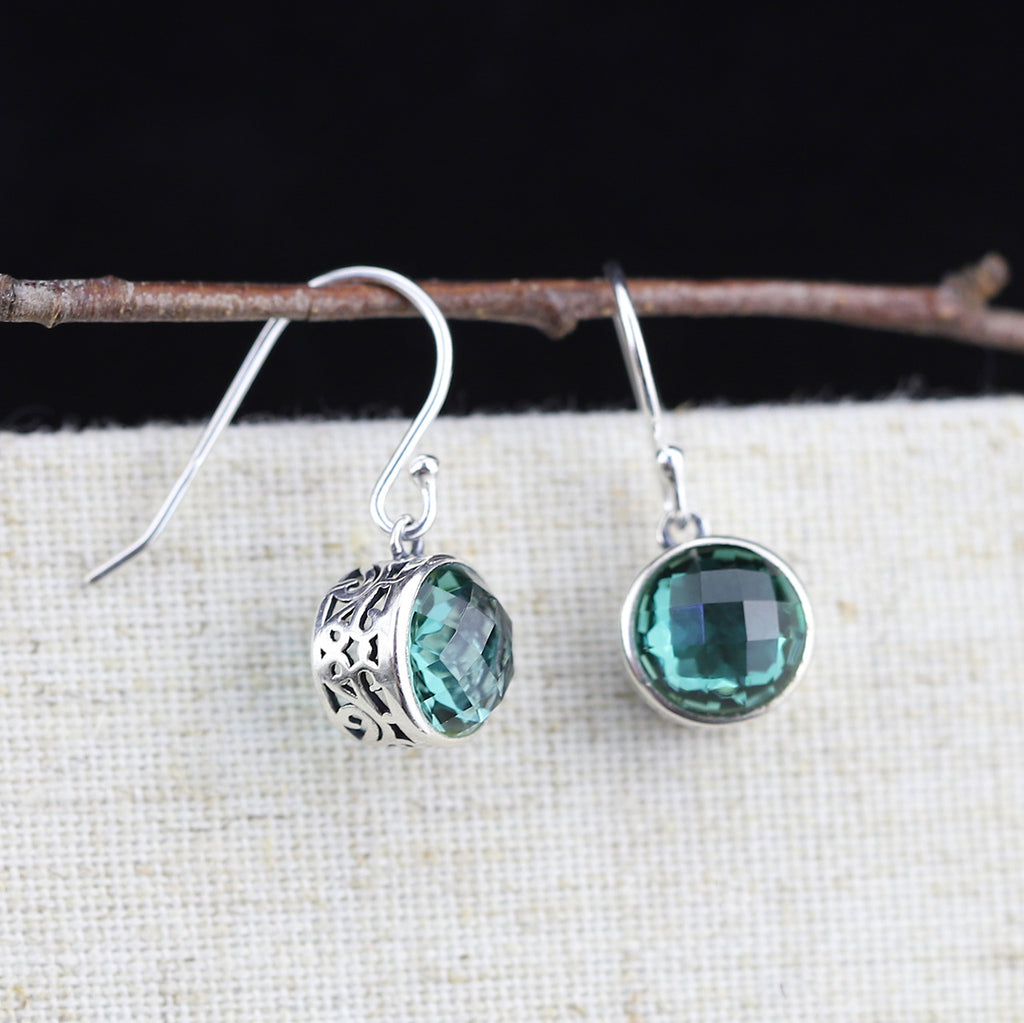 Jewelry, Thai Silver Hand Earrings Wholesale S925 Sterling Silver Jewelry, Hollow Lady, Cut Green Crystal Eardrop.