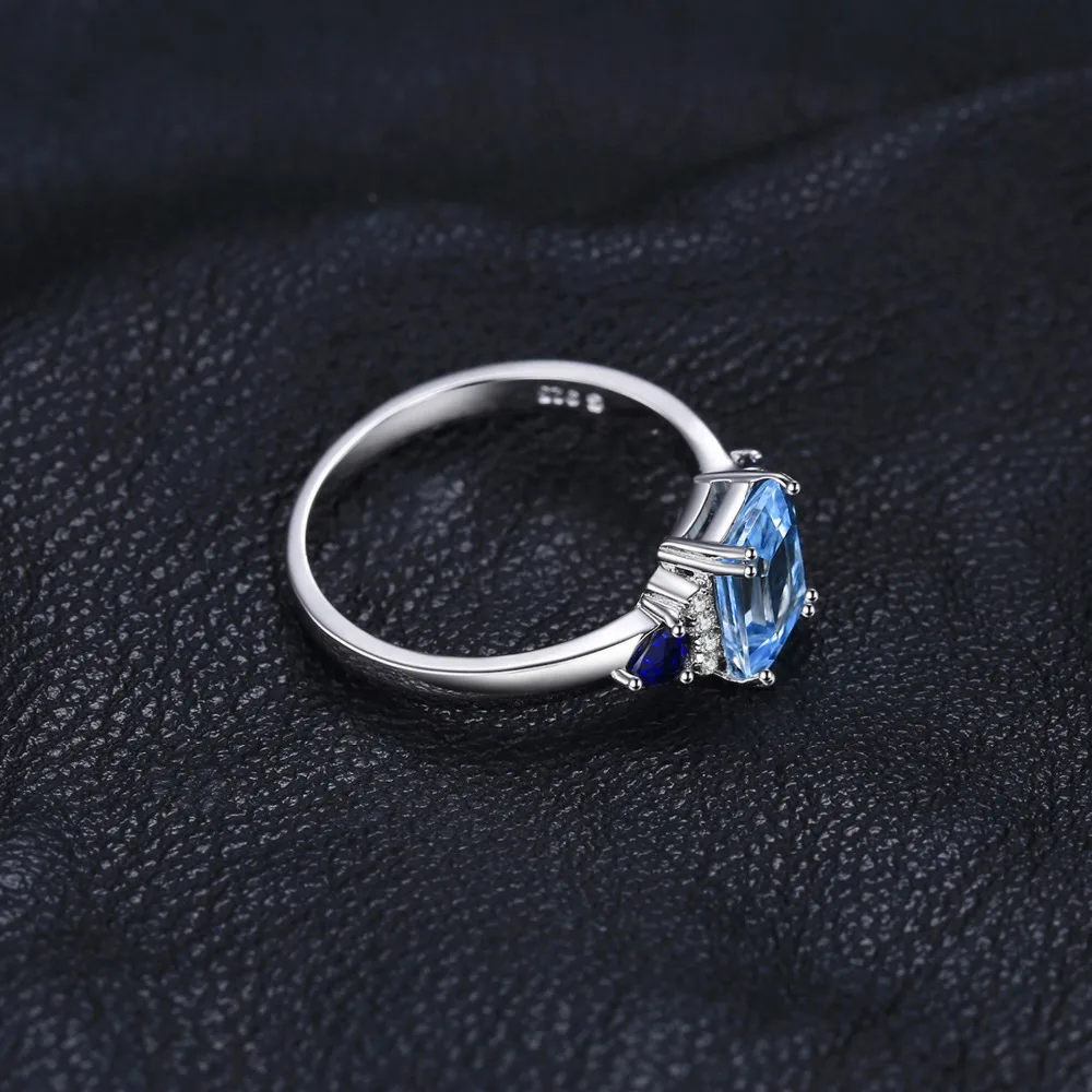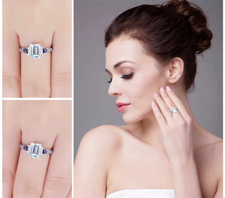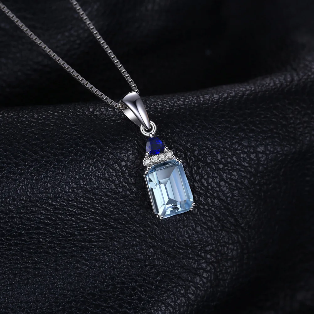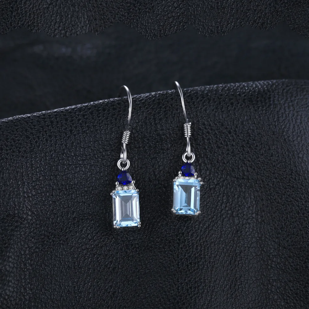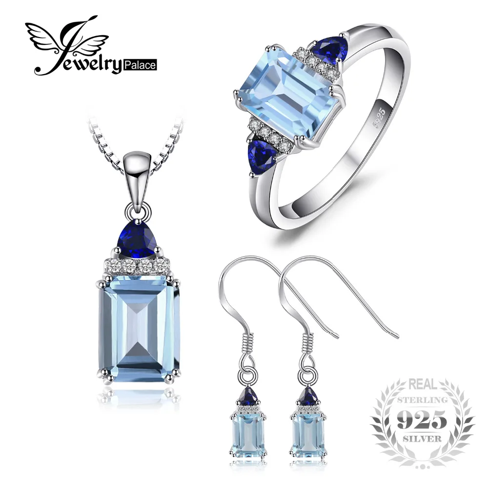 5ct Emerald Cut Sky Blue Topaz Created Sapphire Ring Drop Earrings Pendant Necklaces Women 925 Silver Jewelry Sets