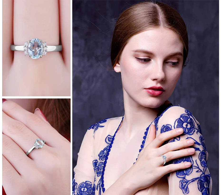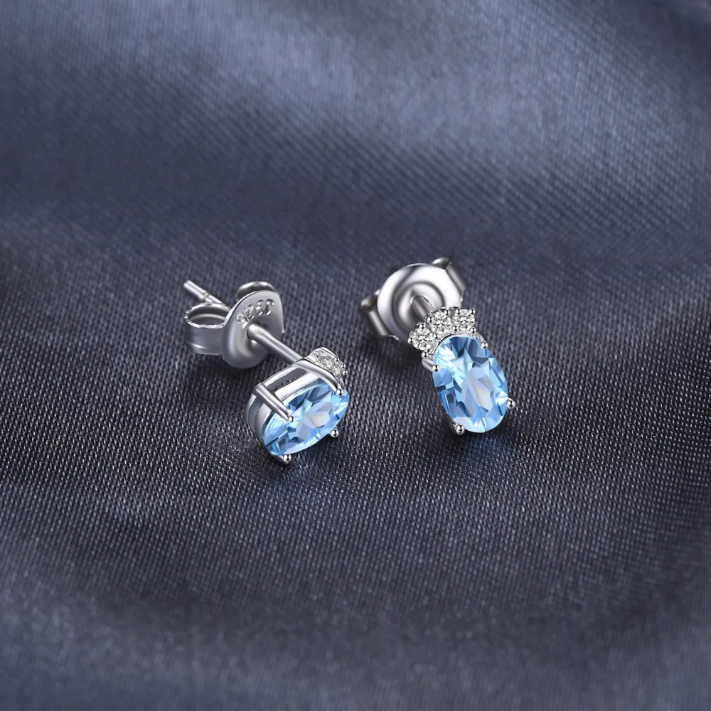 Birthstone 3.2ct Genuine Oval Sky Blue Topaz Ring Pendant Necklace Stud Earrings Jewelry Sets 925 Sterling Silver