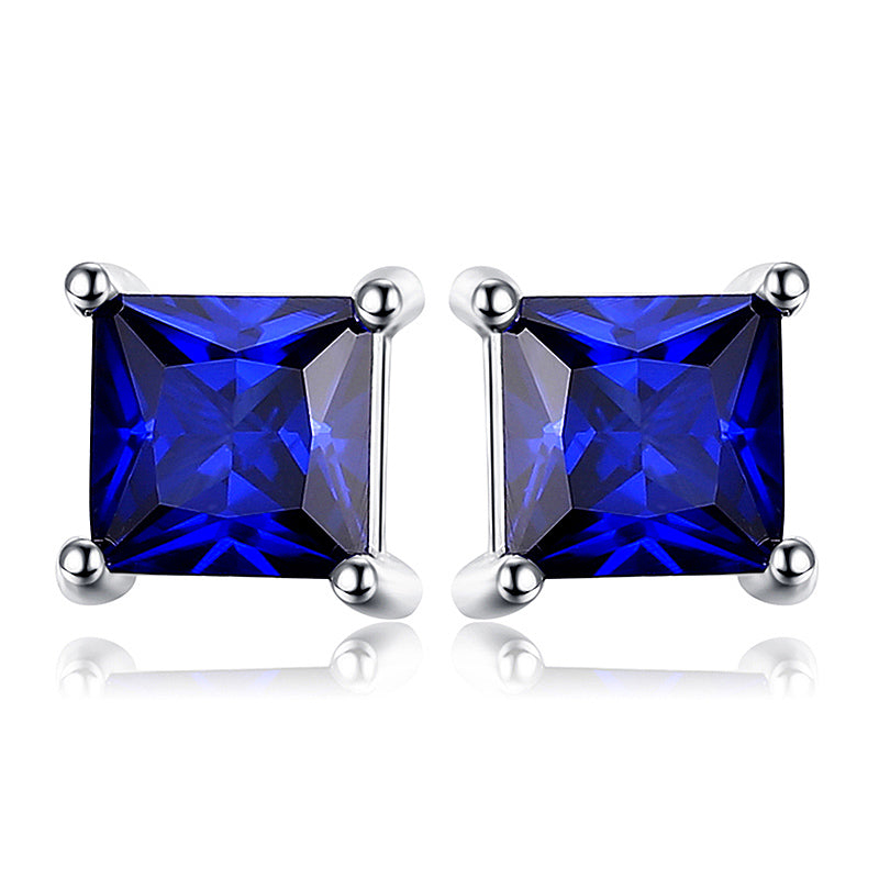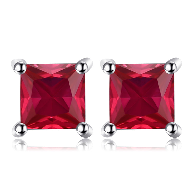 Hot Sale Square Created Sapphire Emerald Ruby Authentic 925 Sterling Silver Stud Earrings Jewelry Women Fashion
