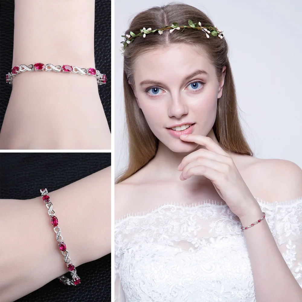 Love Infinity 6.8ct Oval Created Ruby Tennis Bracelet 925 Sterling Silver Fashion Wedding Jewelry For Women Gift