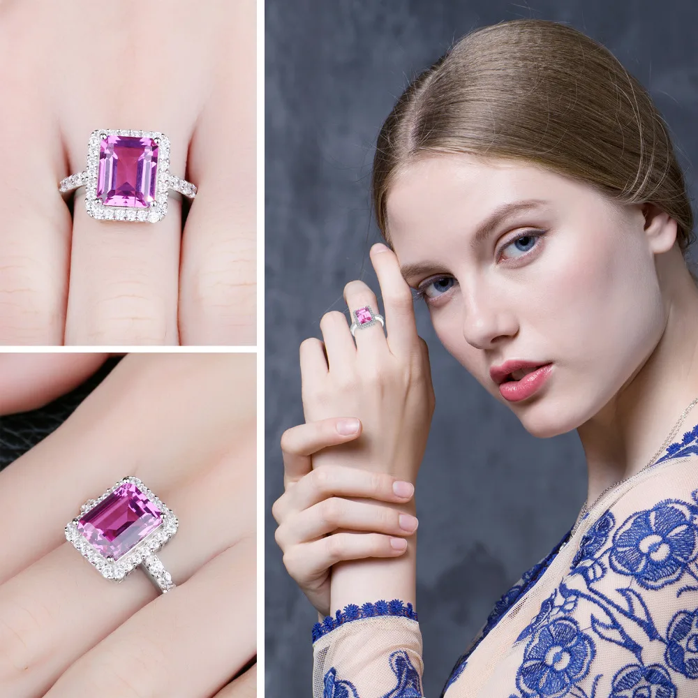 luxury 4.88ct Created Pink Sapphire Cocktail Ring 925 Sterling Silver Jewelry For Women New Fashion 2020 Hot Sale