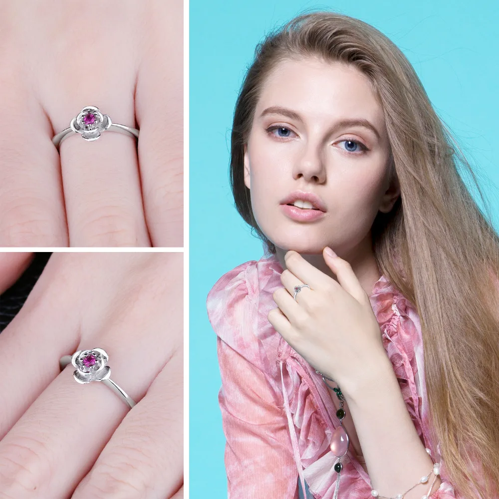 Promise Love Rose-In-Bloom Created Ruby Ring 925 Sterling Silver Rings For Women Brand Fine Jewelry Accessories