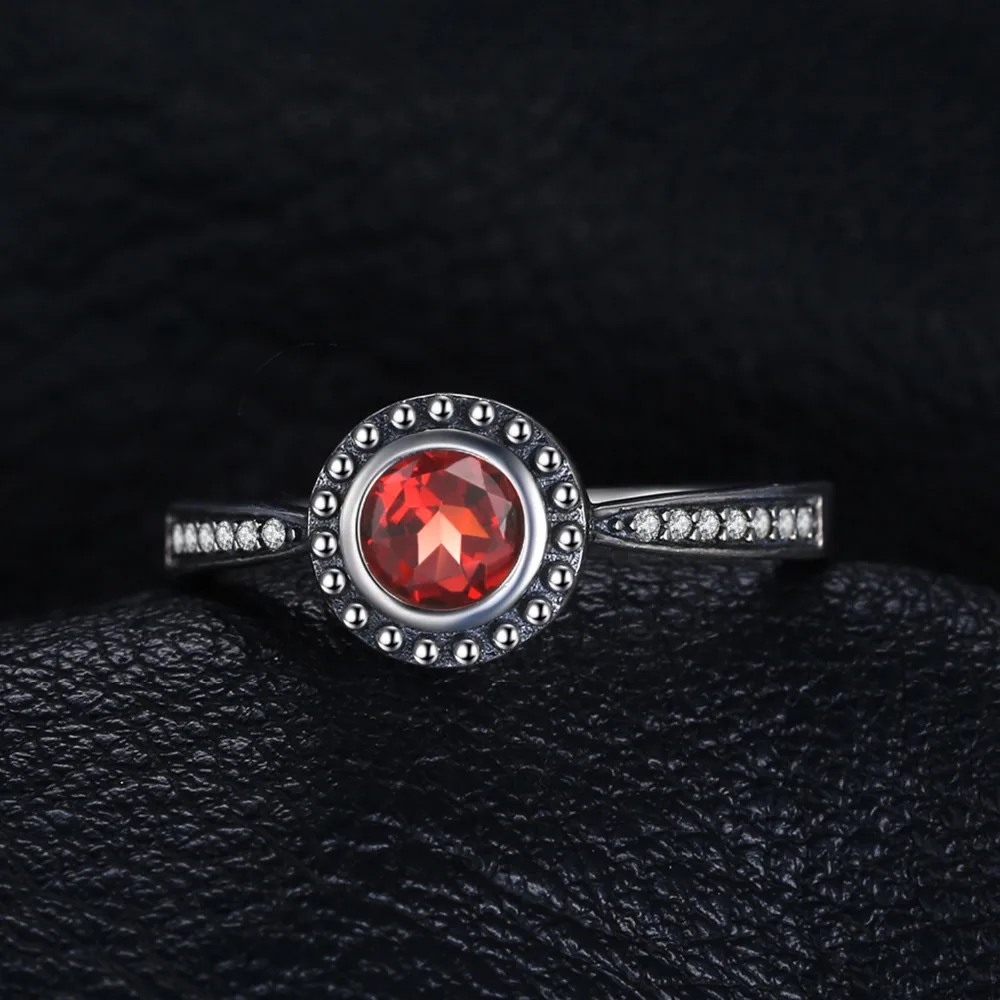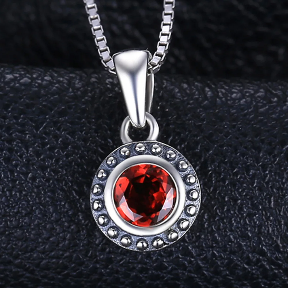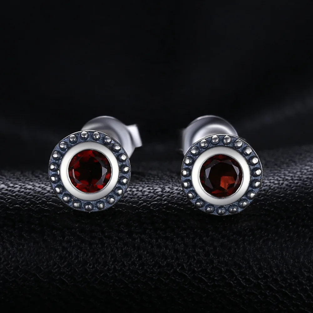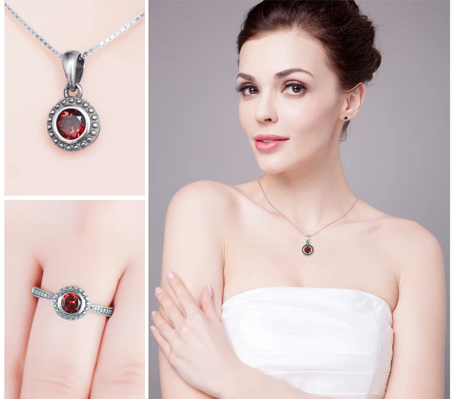 Vintage 1.8ct Natural Garnet Ring Stud Earrings Pendant Necklaces Chain 45cm 925 Sterling Silver Fine Jewelry Sets