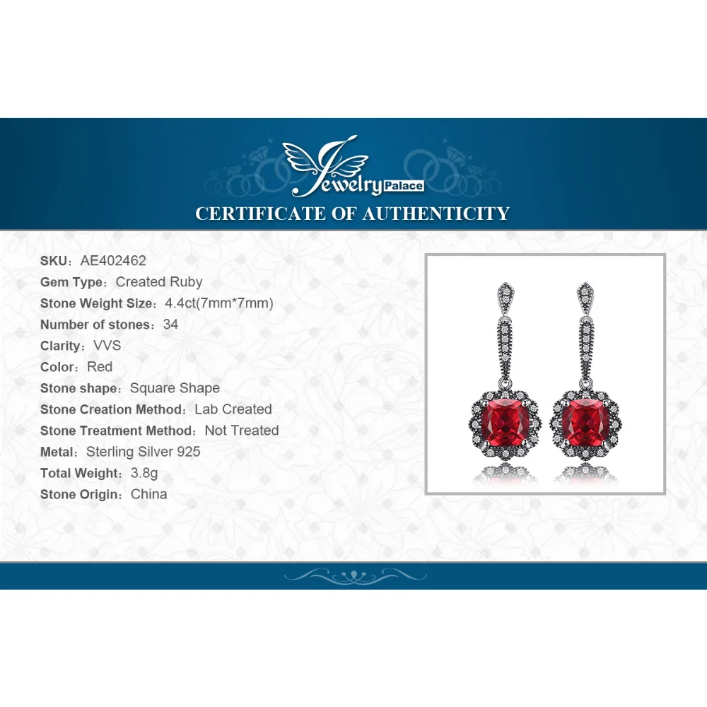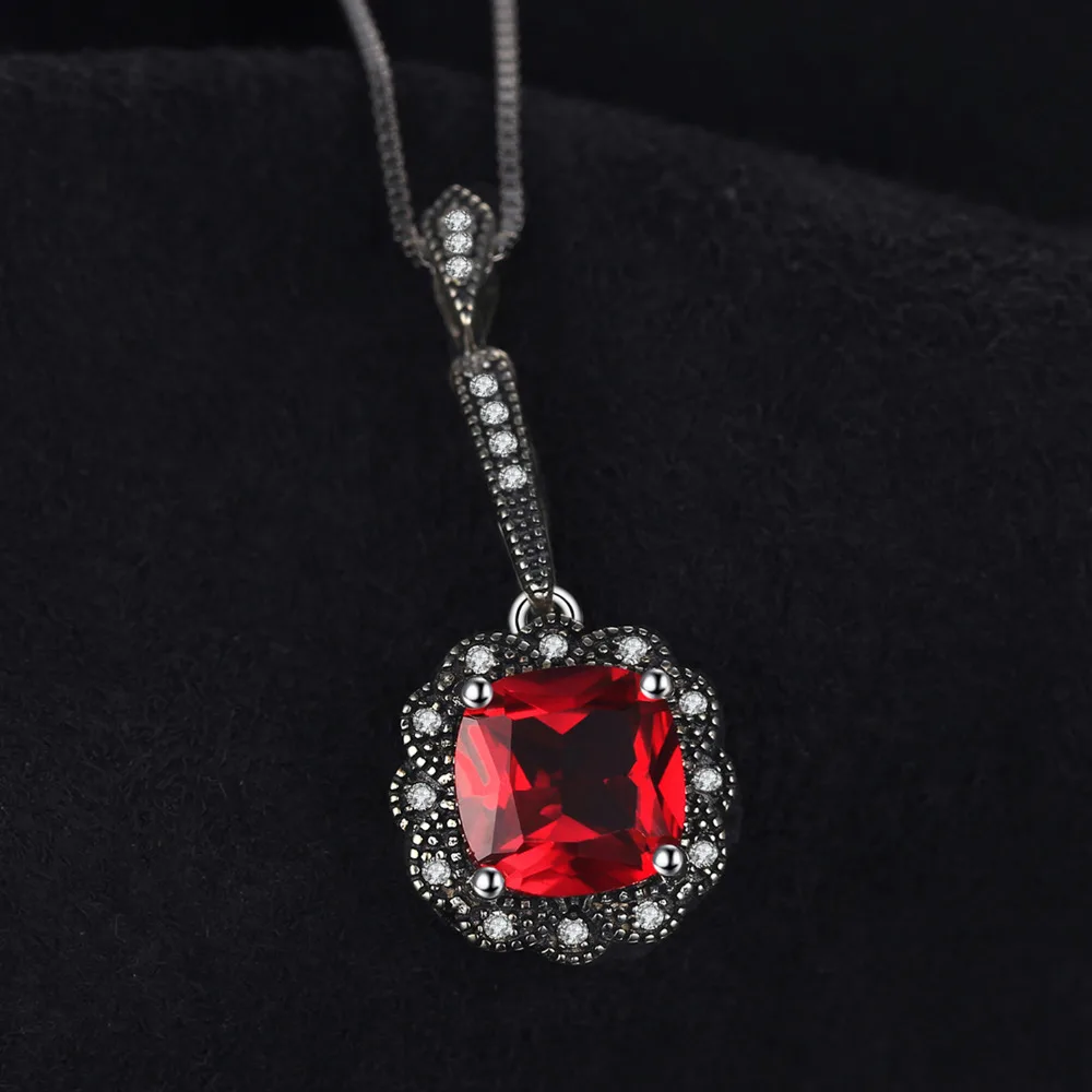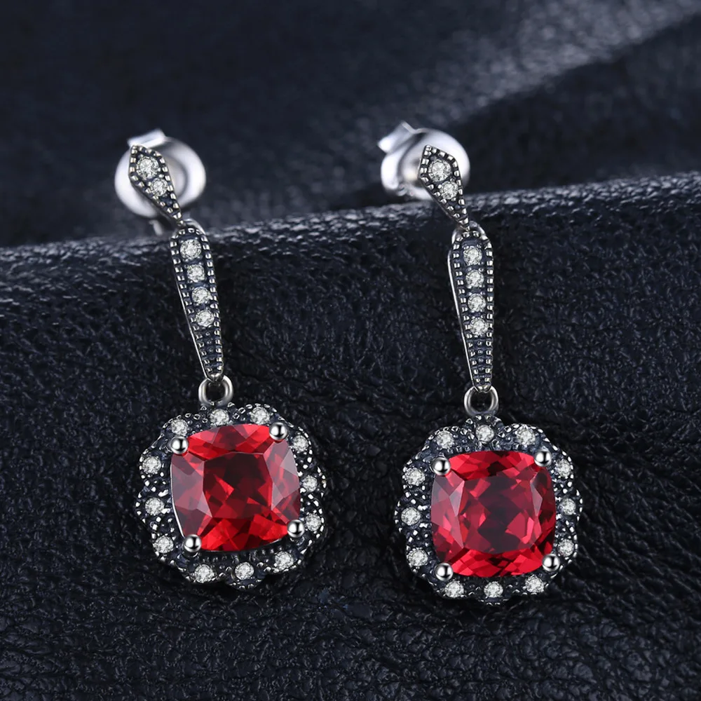 Vintage 11ct Created Ruby Ring Pendant Necklace Drop Earrings Fine Jewelry Sets 925 Sterling Silver 45cm Chain New
