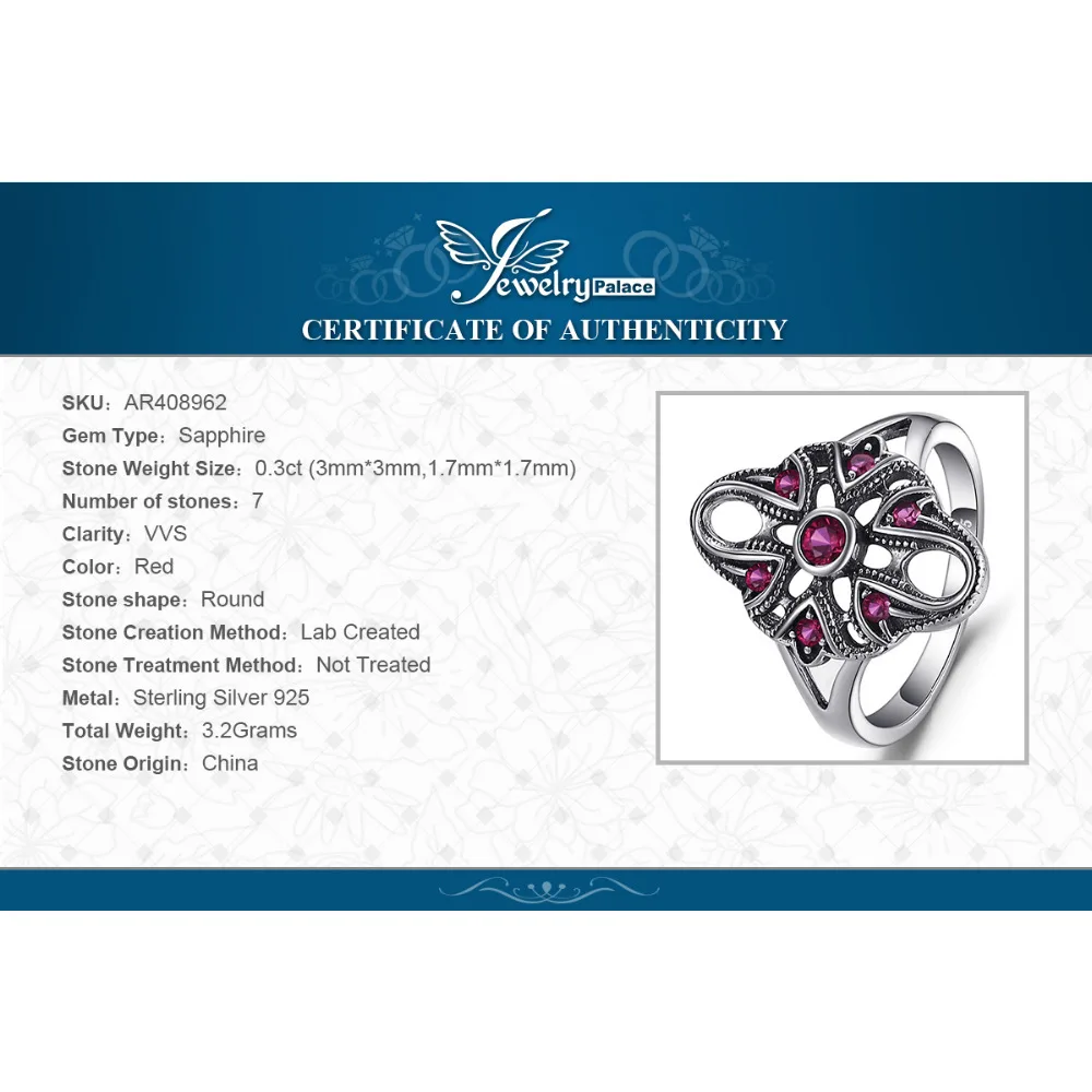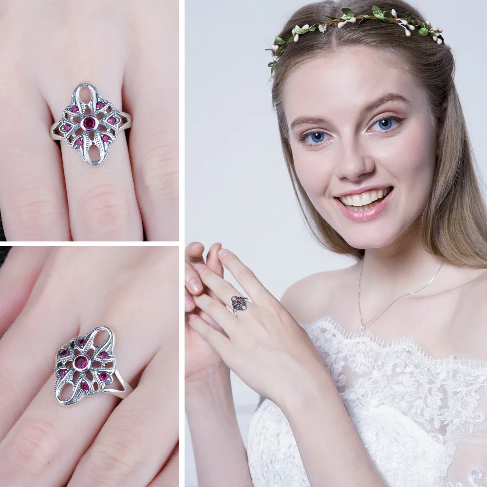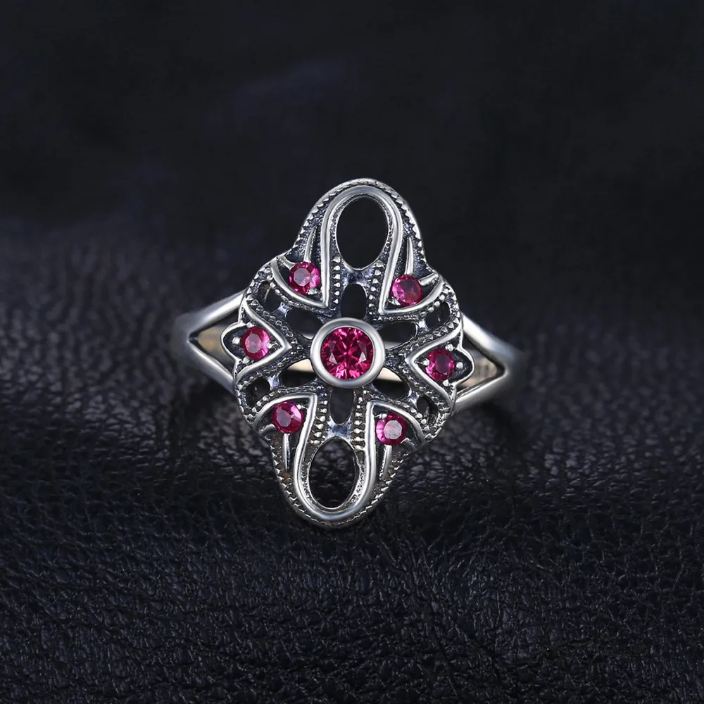 Vintage Exaggerated 0.3ct Created Ruby Ring 925 Sterling Silver Fine Jewelry New Gift for Women Finger Ring