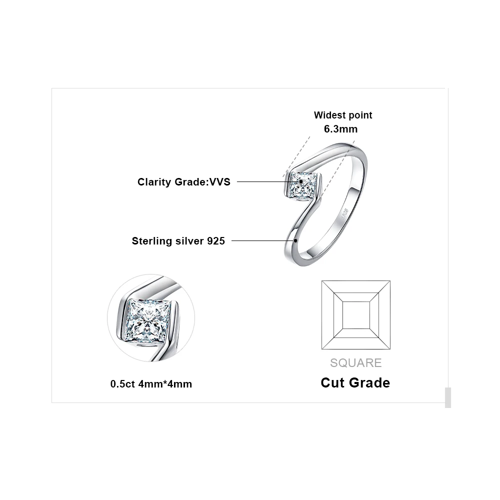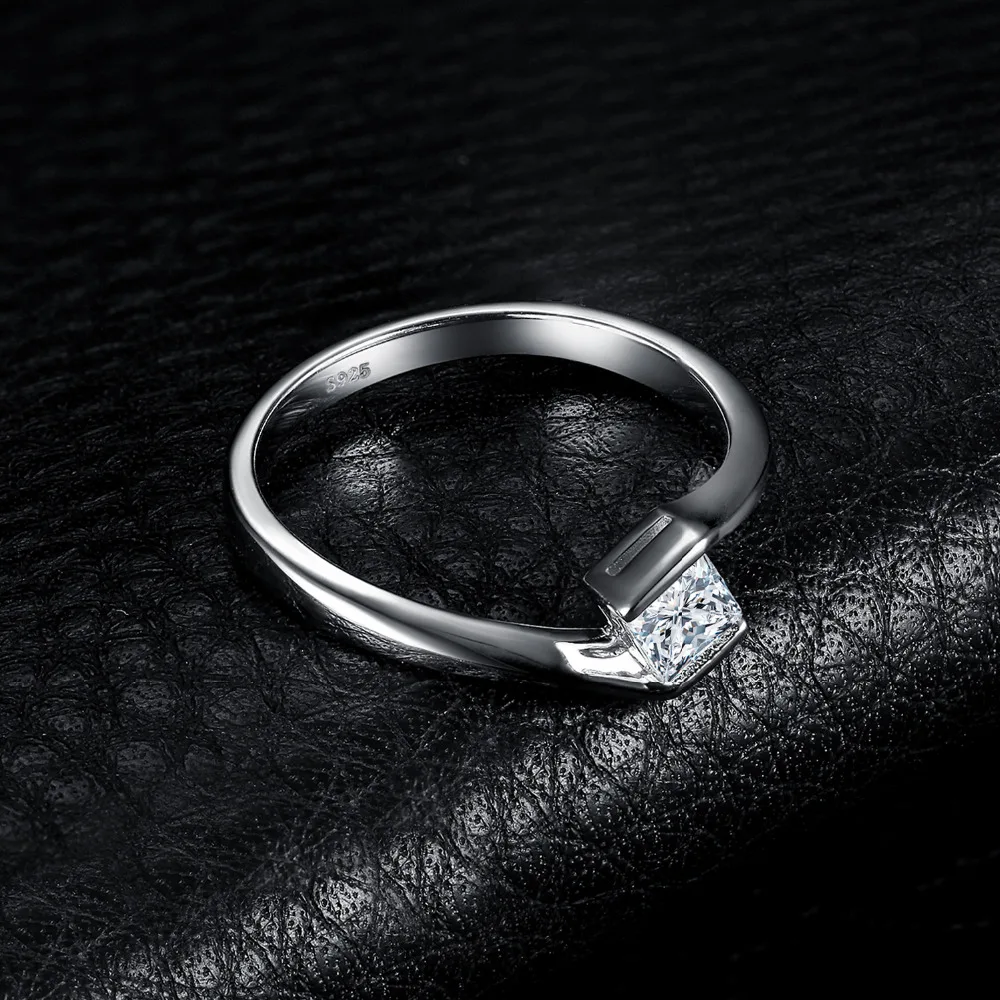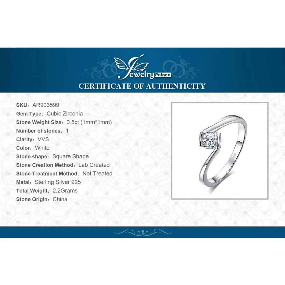 JewerlyPalace Princess Cut Cubic Zirconia Anniversary Promise Solitaire Engagement Ring 925 Sterling Silver For Mother Fine Gift