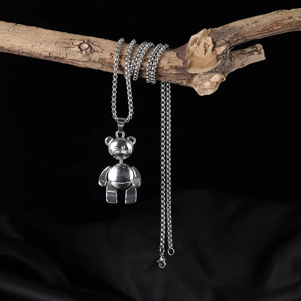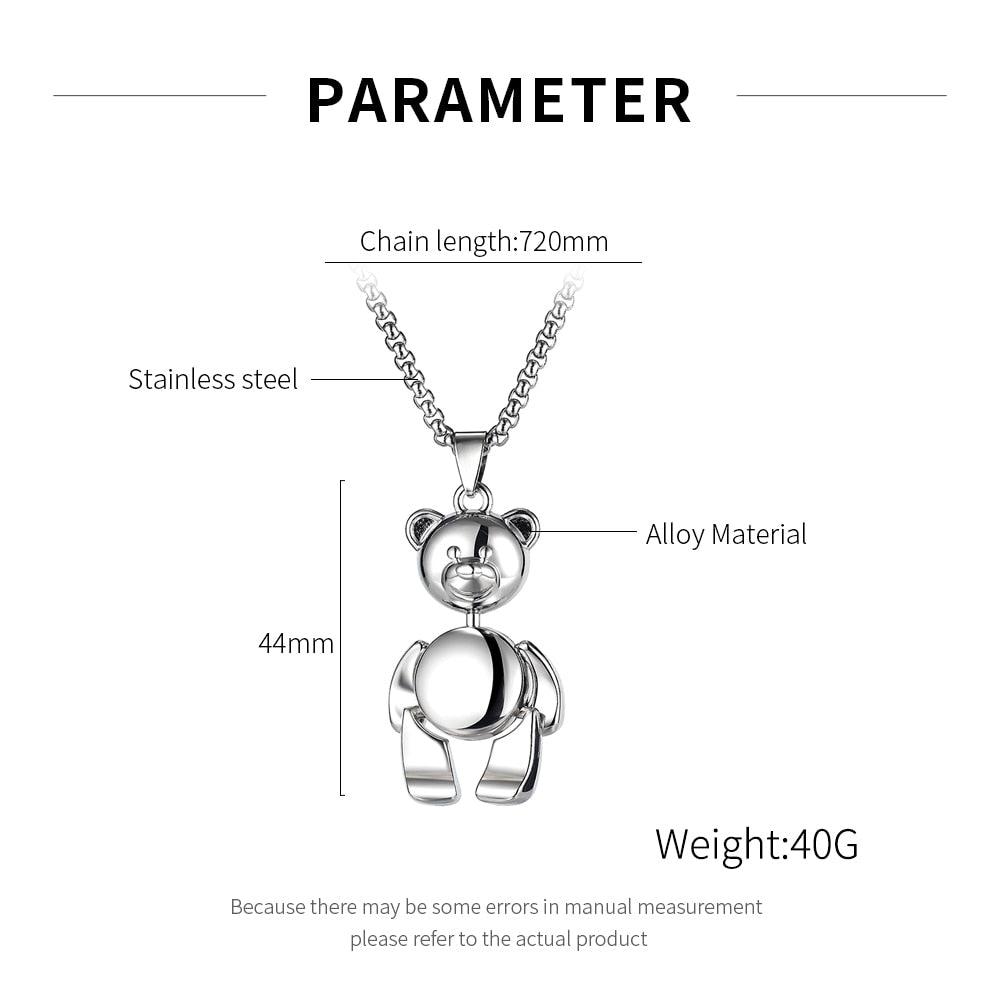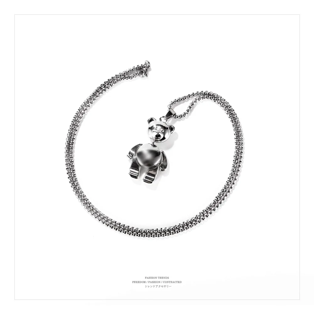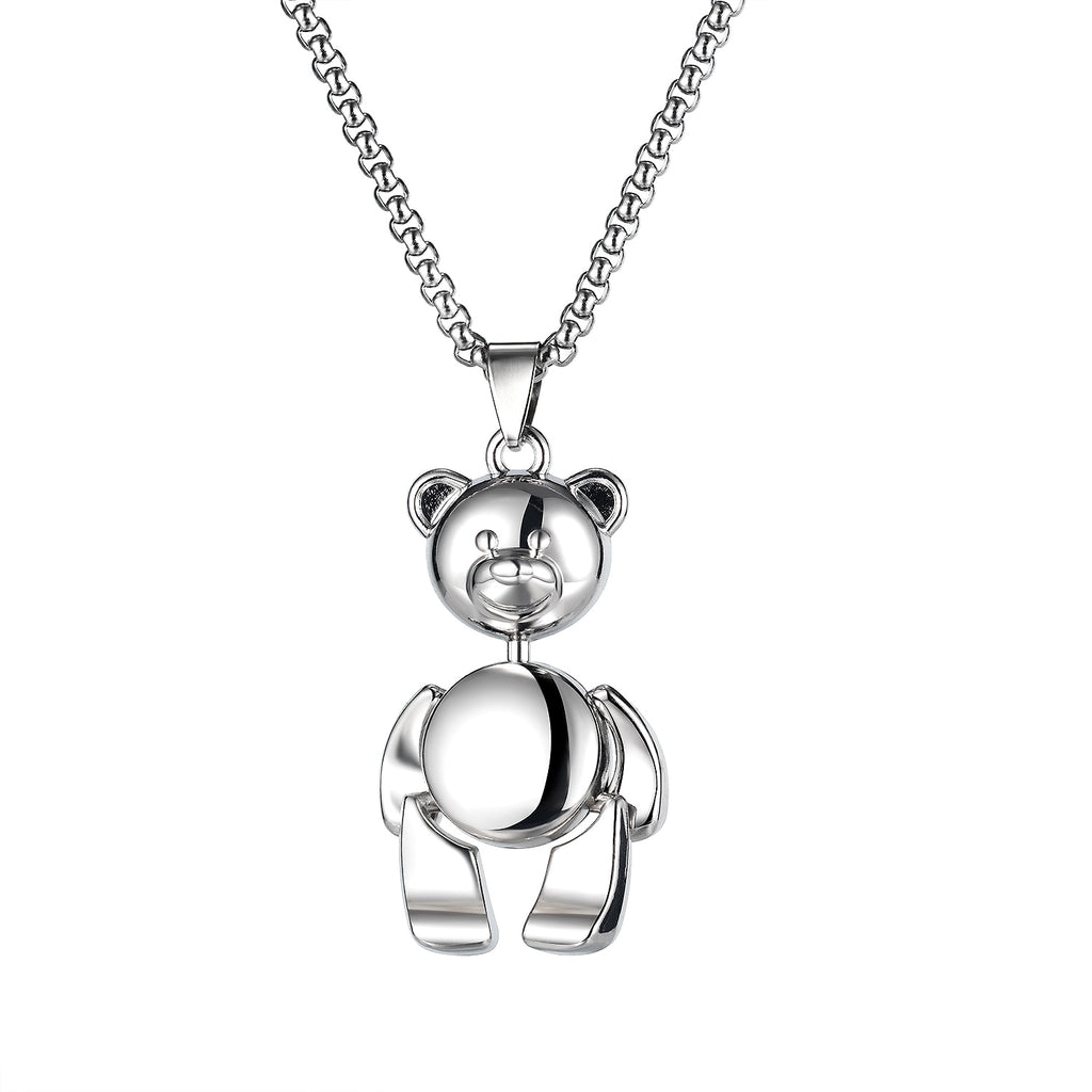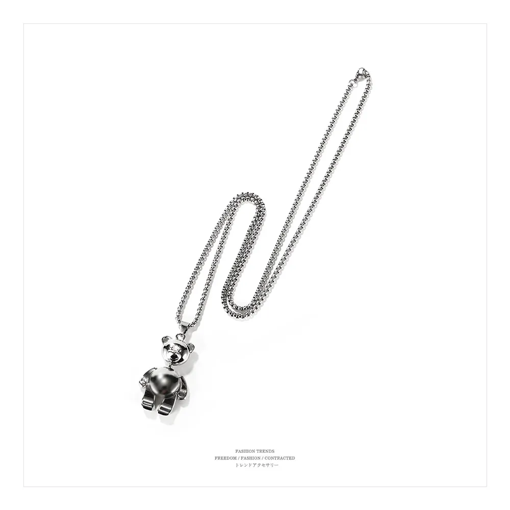 JIALY European Punk Little Bear Charm Pendant Stainless Steel Necklace Chain For Girl Boy Unisex Jewelry