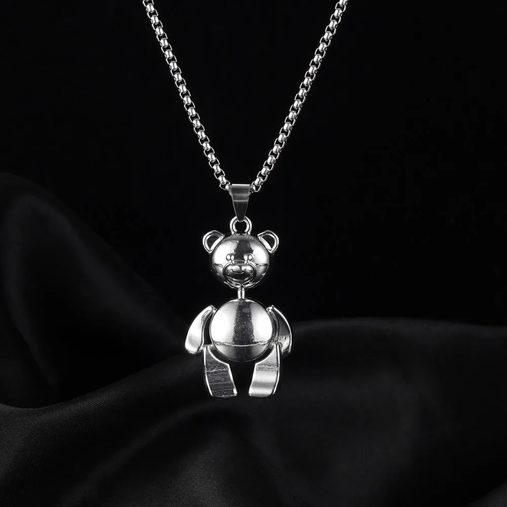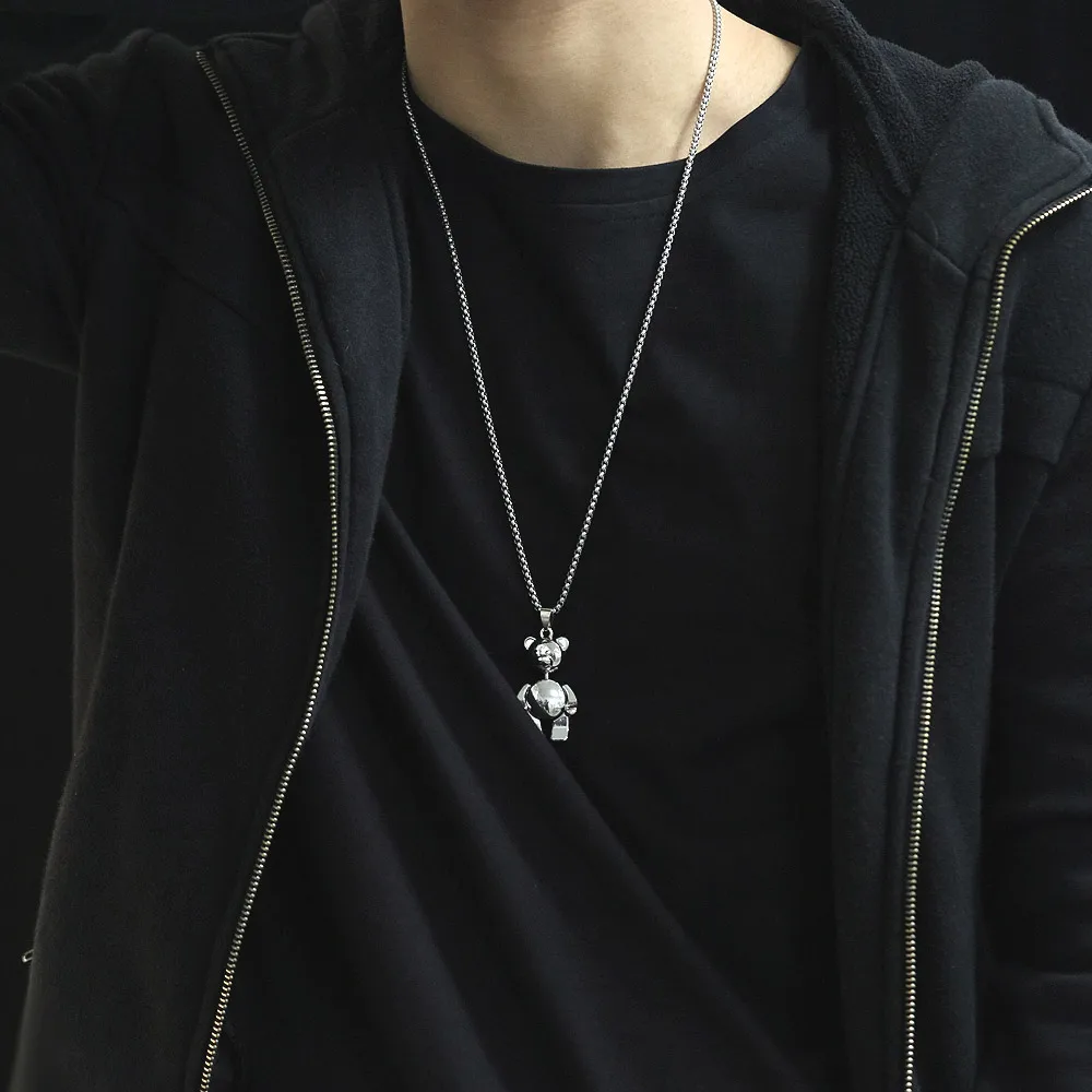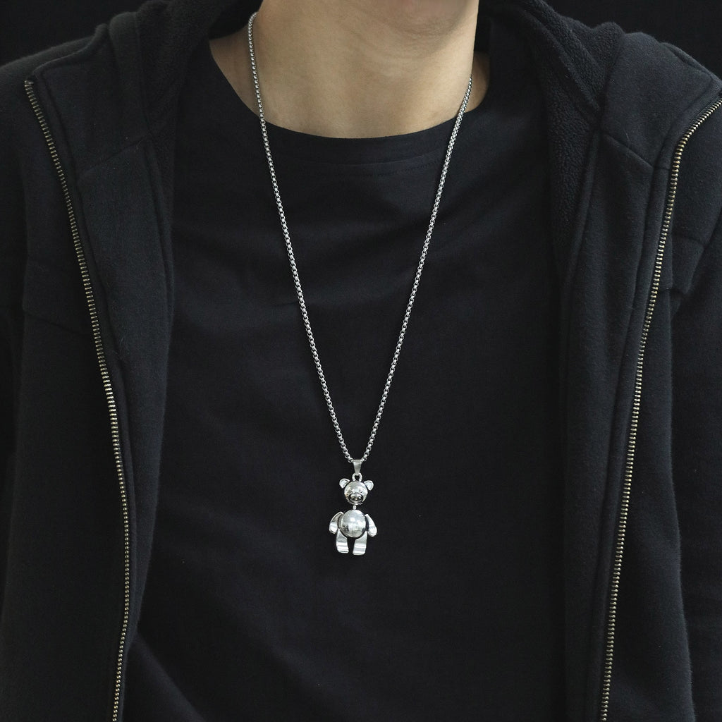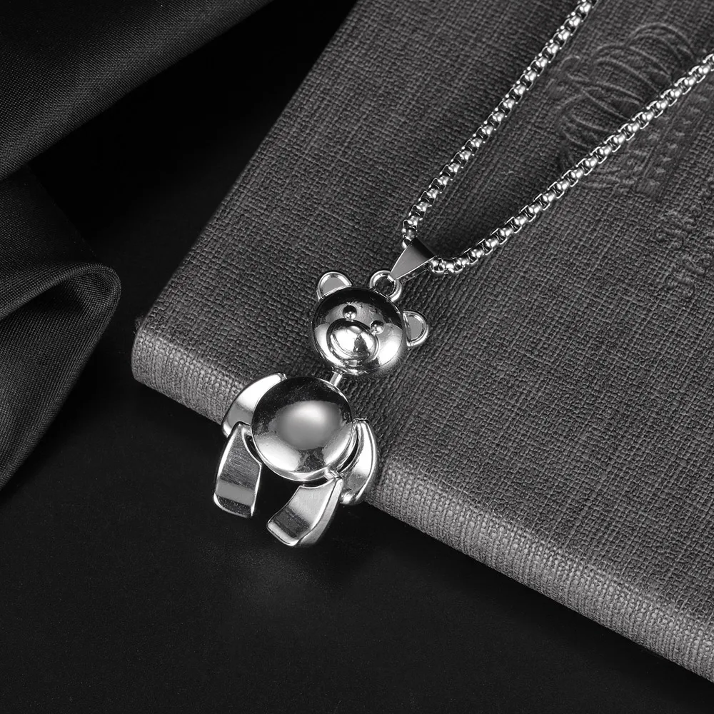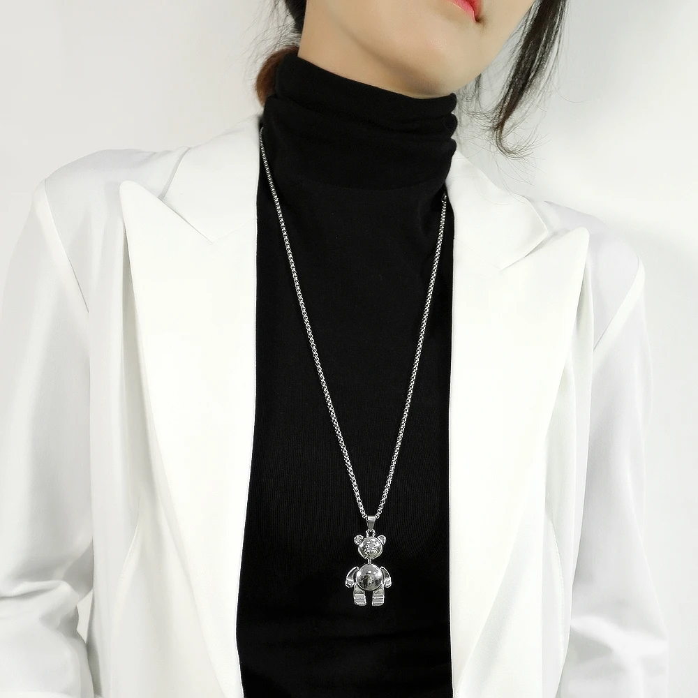 JIALY European Punk Little Bear Charm Pendant Stainless Steel Necklace Chain For Girl Boy Unisex Jewelry