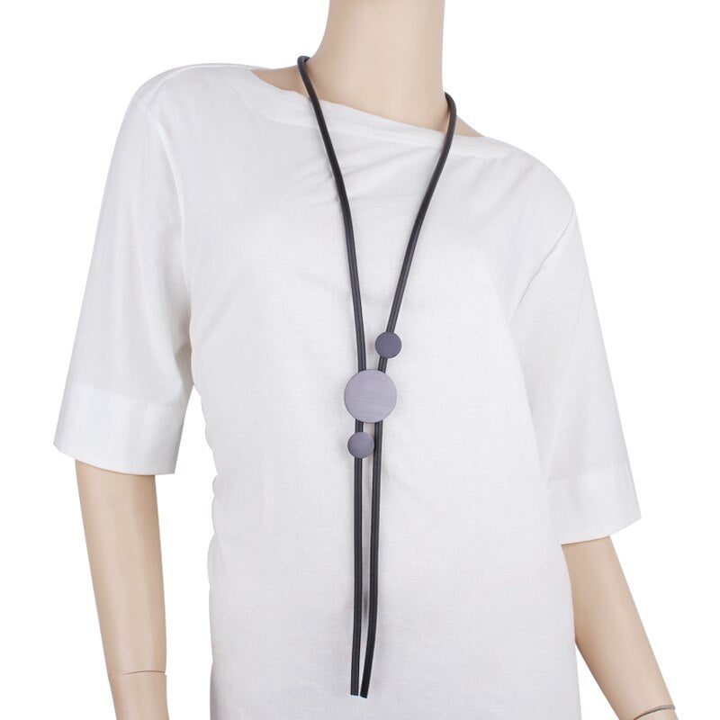 JID Gothic Rubber Long Necklace Women Simple Handmade Pendant Necklaces Round Alloy Jewelry Festival Gift