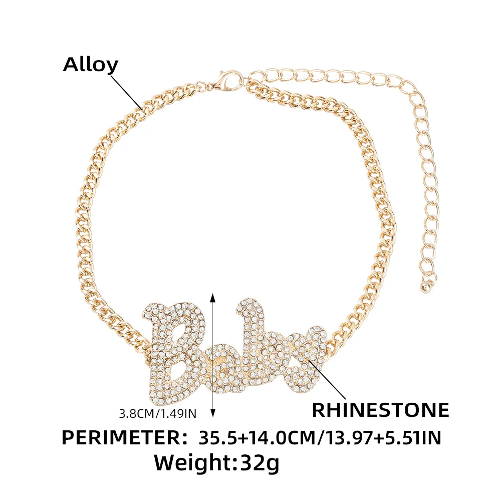 JIJIAWNEHUA Trend Sparkling Rhinestone Alloy women's Letter Necklace Dinner Party Statement Jewelry Accessories