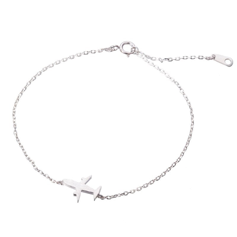 100% 925 Silver Airplane Plane Bracelet Adjustable Link Chain Bracelet Bangle for Women Girl Cute Charm Jewelry Gift