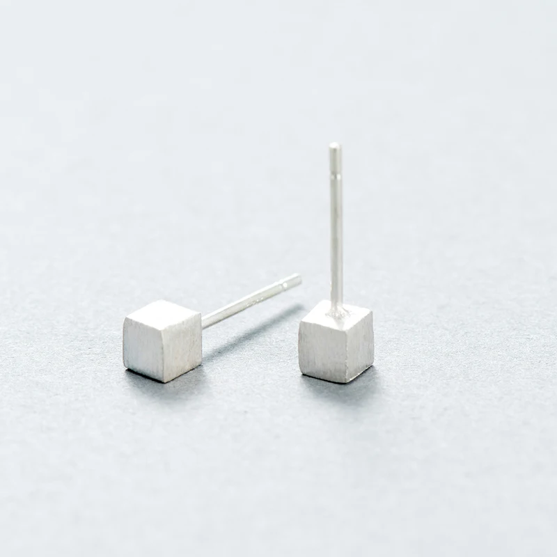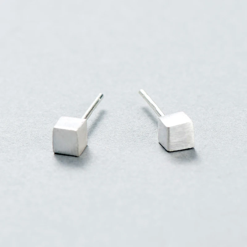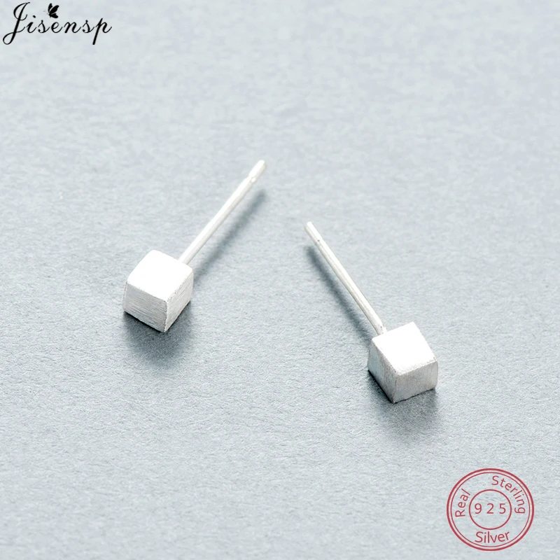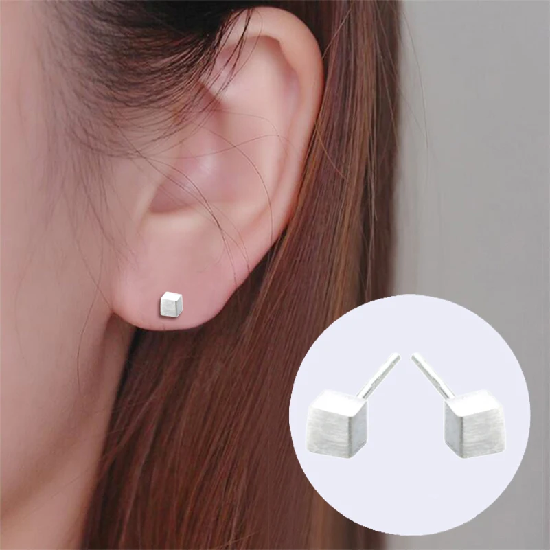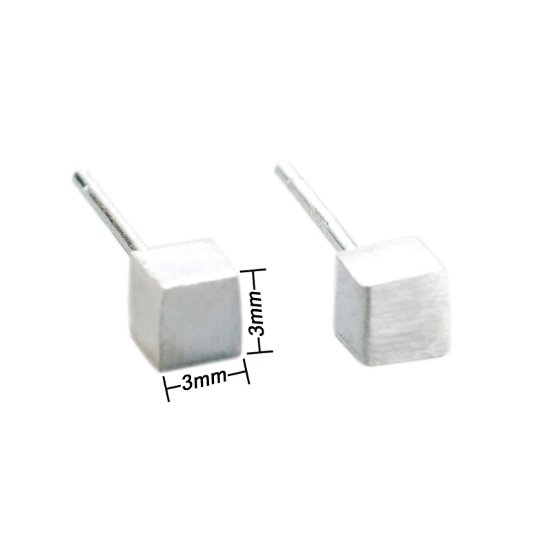 925 Sterling Silver Simple Cubes Stud Earrings for Women High Quality Square Earing Allergy Free Sterling-silver-jewelry