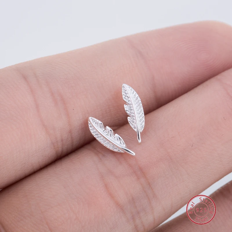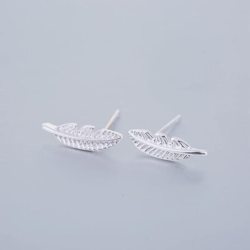 Fashion 925 Silver Feather Earrings for Women Small Leaf Stud Earrings Wedding Gift Sterling Silver Jewelry Brincos