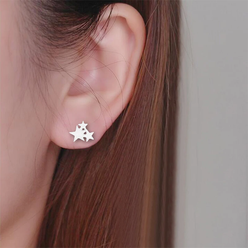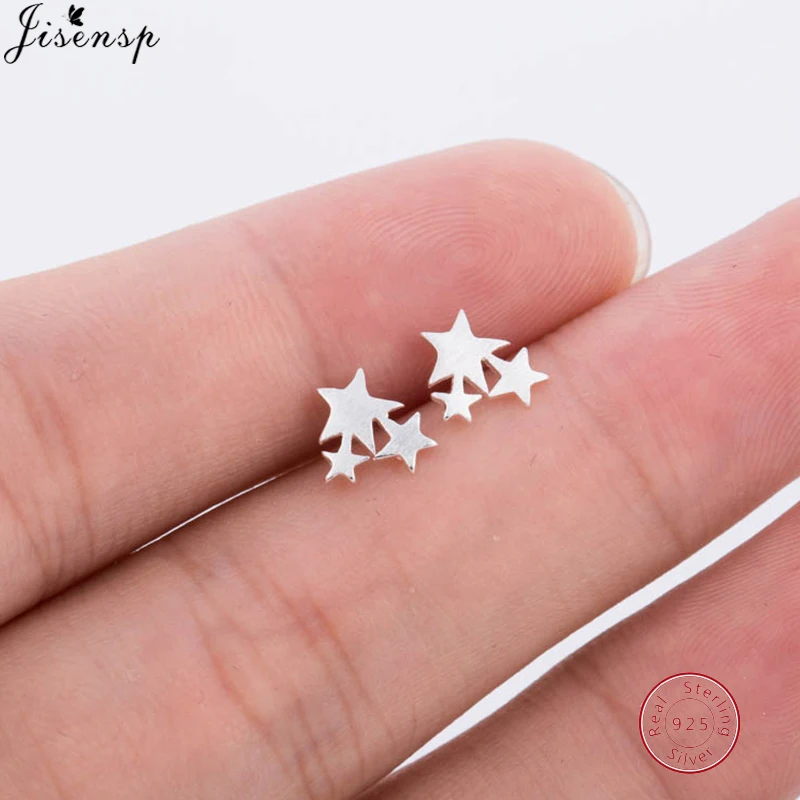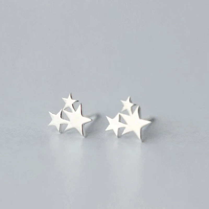 Fashion Vintage Geometric Star Earrings for Women 925 Sterling Silver Jewelry Tiny Matte 3 Stars Earing Birthd Brincos