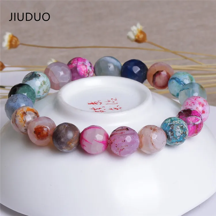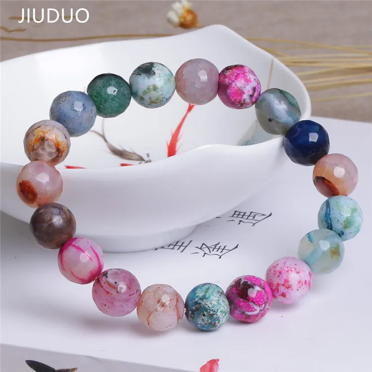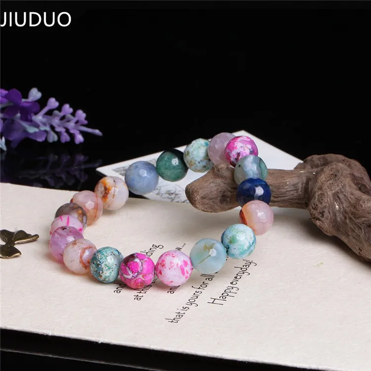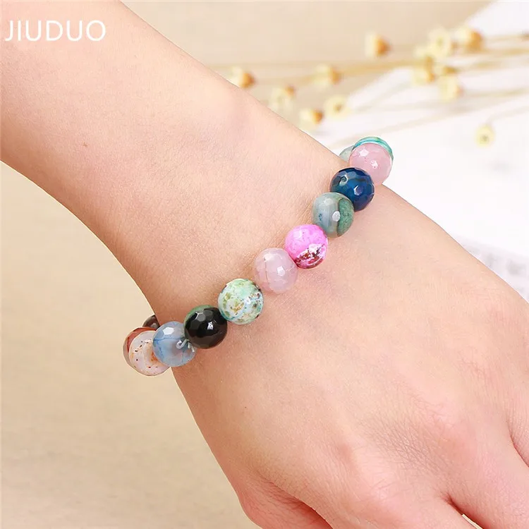 8MM Natural Stone Coloful Agate Malachite Tiger Eye Round Beads Stretch Bracelet identification design factory direct