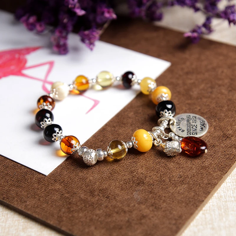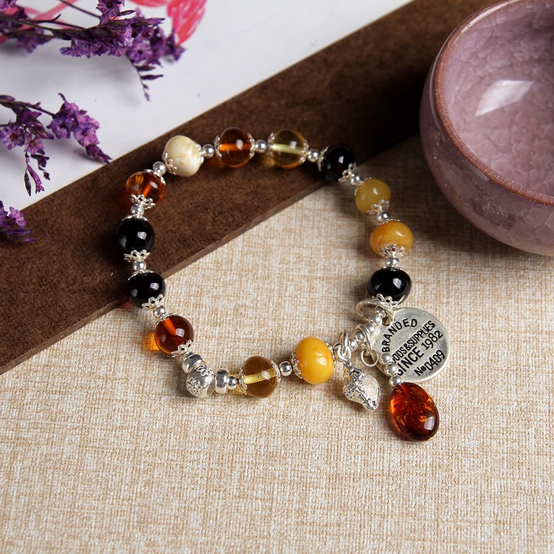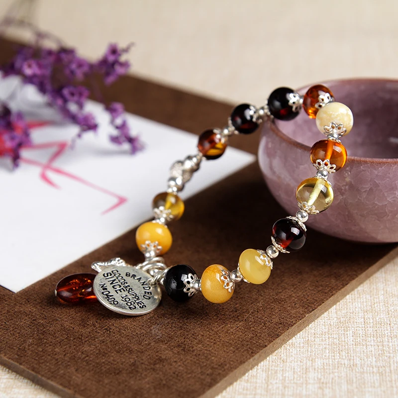 bracelets silver natural amber classic beeswax bracelets for women fine jewelry for men