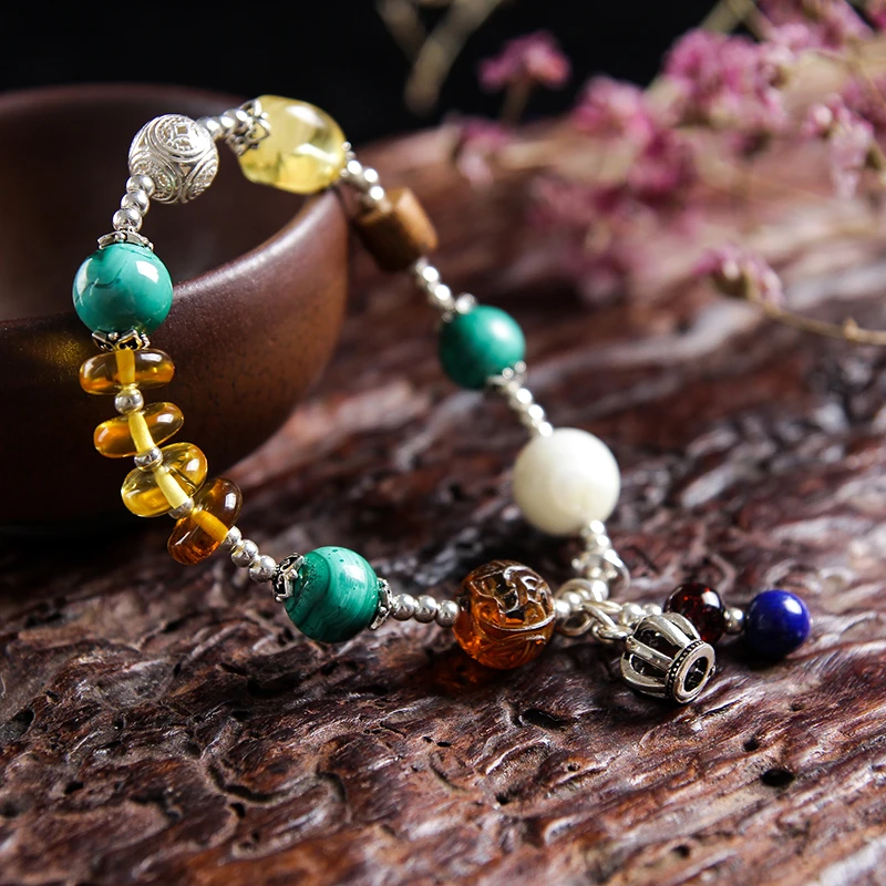 bracelets 925 sterling silver 100% natural amber classic beeswax bracelets for women fine jewelry for men