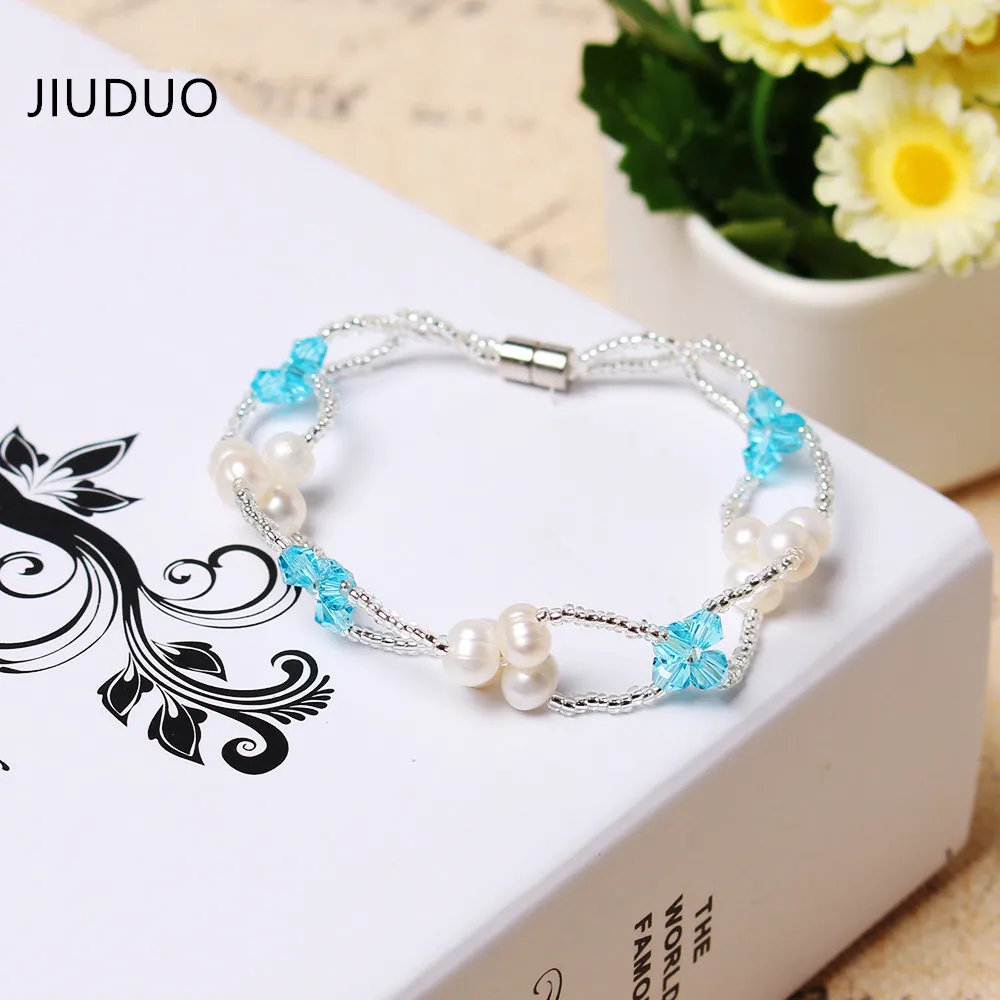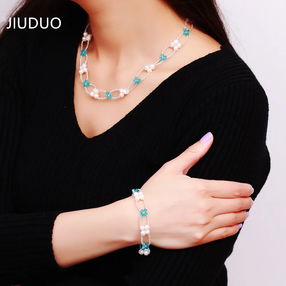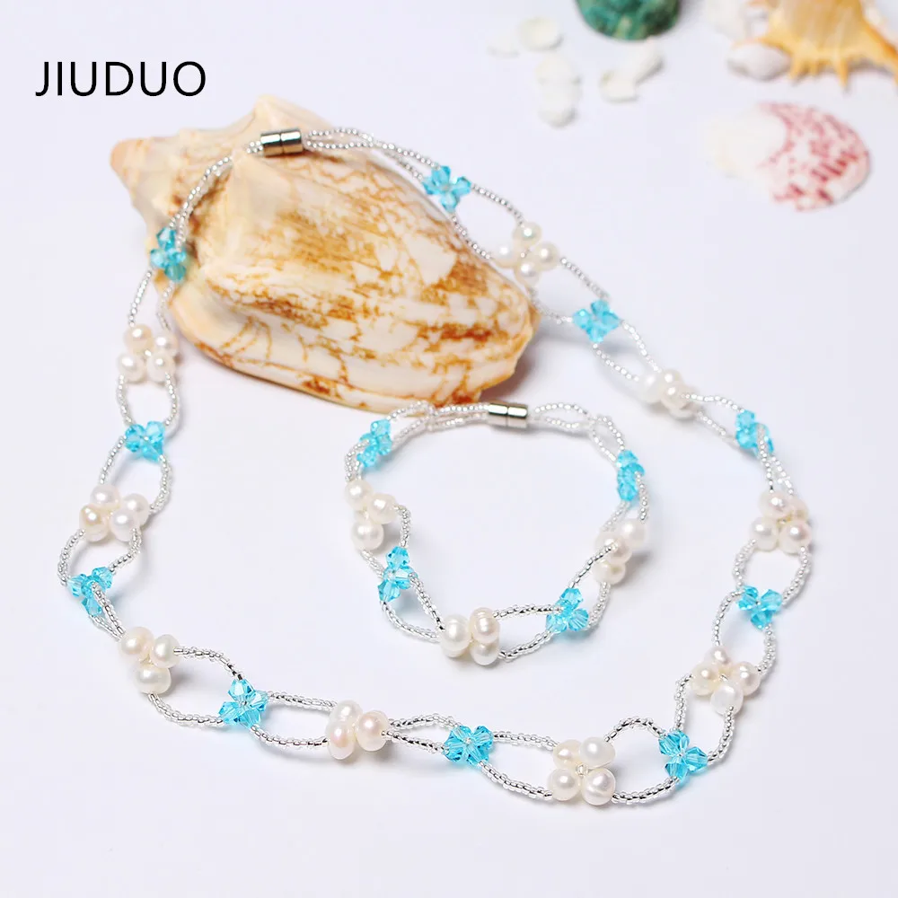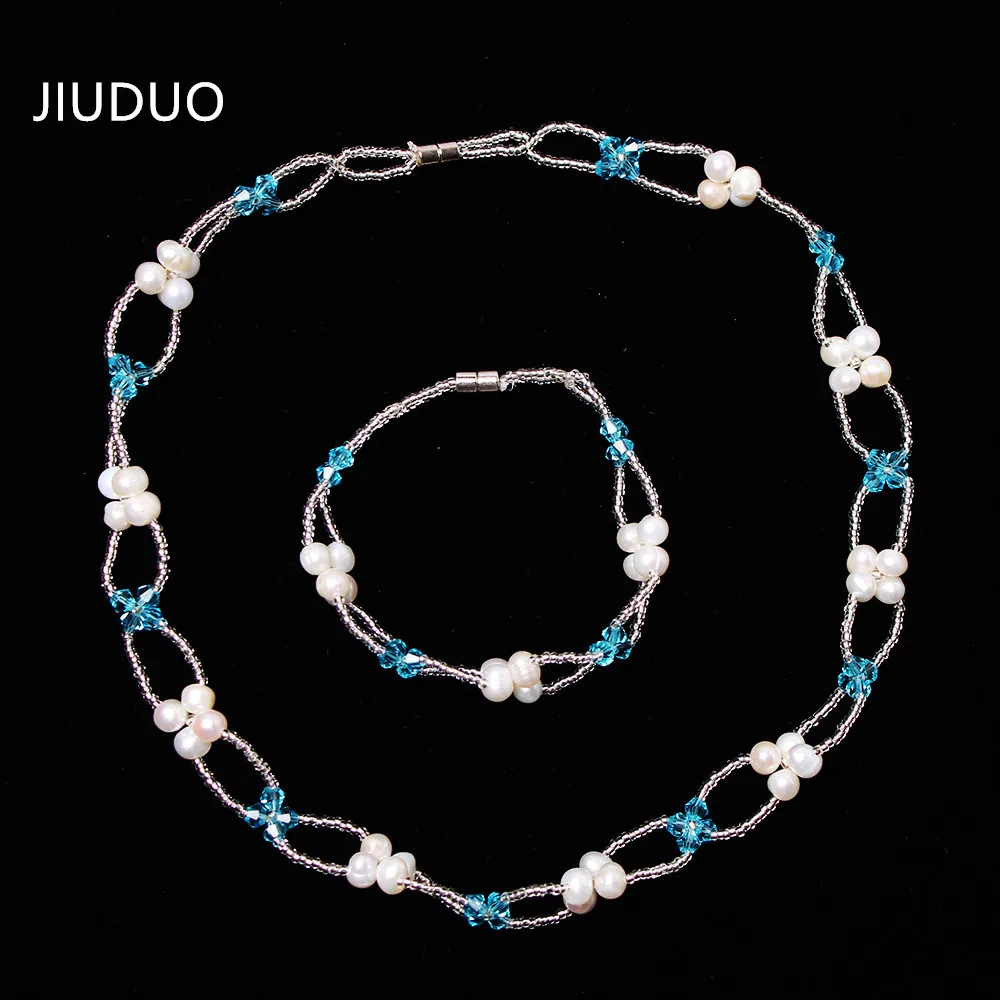 Wedding gift 7-8MM pearl necklace double layer + pearl bracelet bridal suit long necklace multi-layer Genuine natural crystal