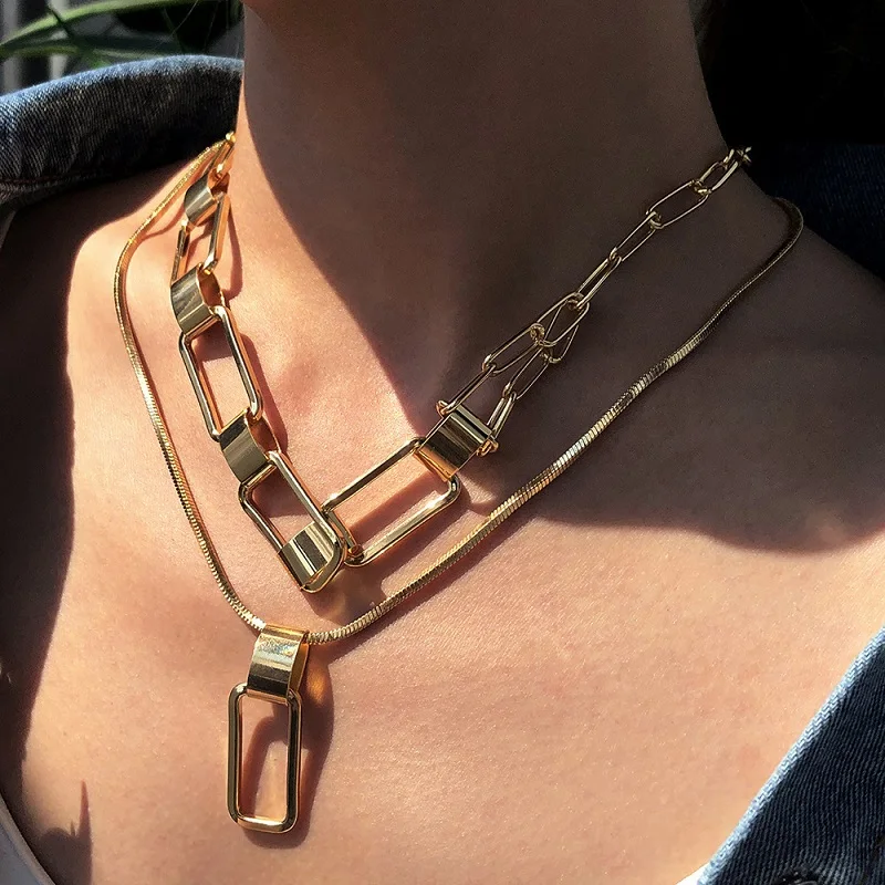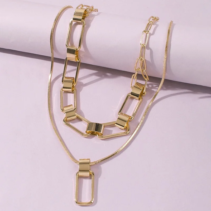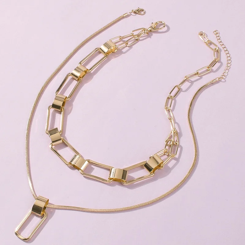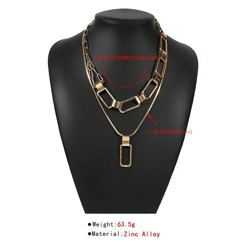 JIUZHEN Hip hop Street double lock necklace industrial style square lock Pendant Necklace Wear jewelry support