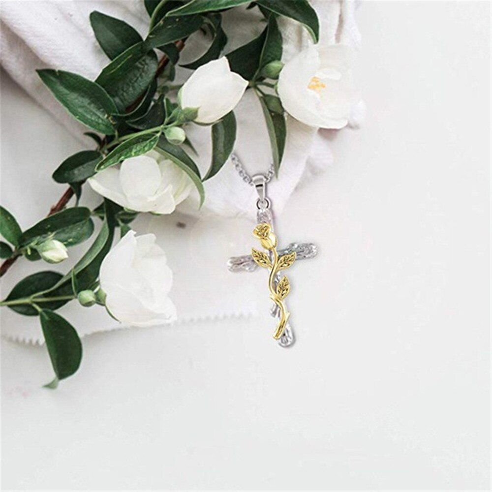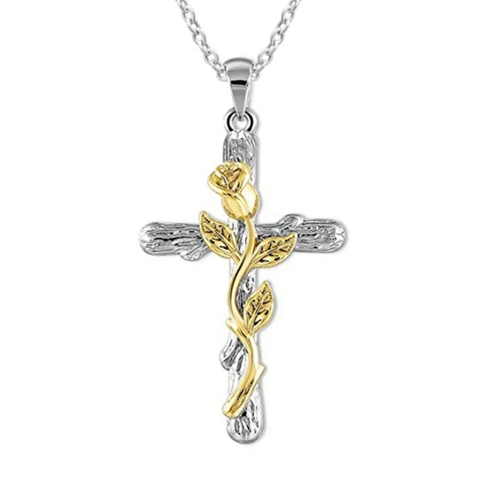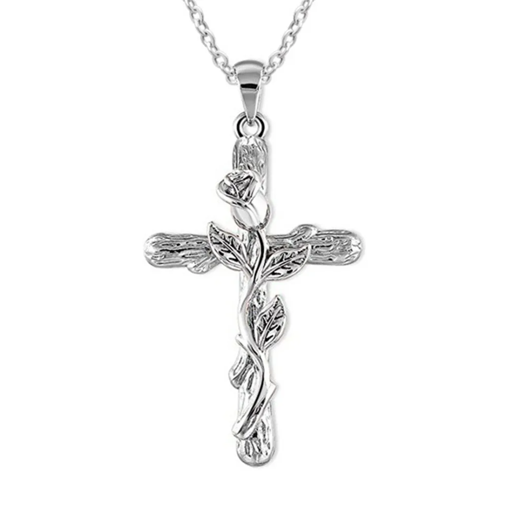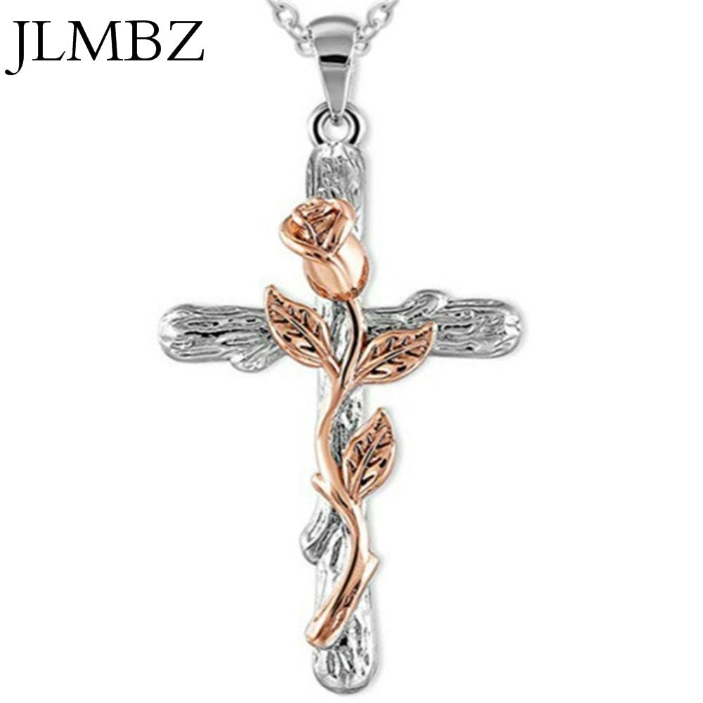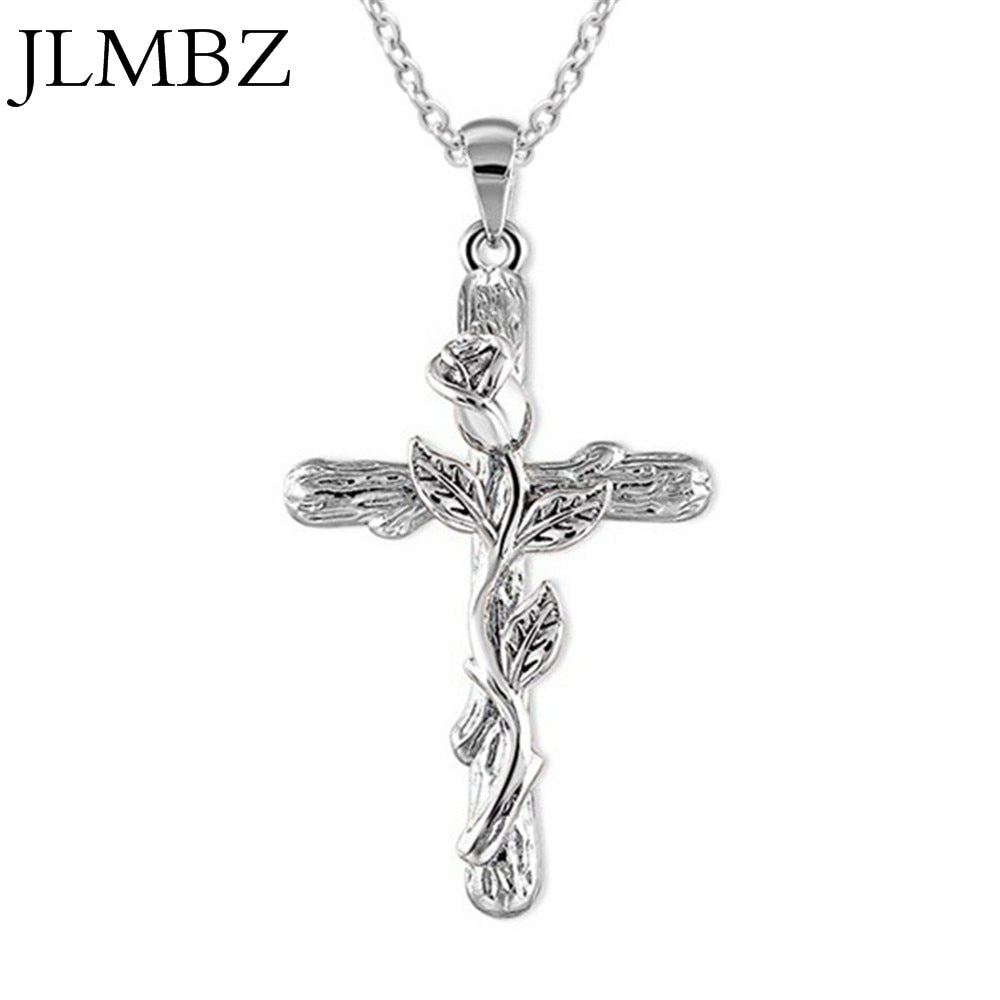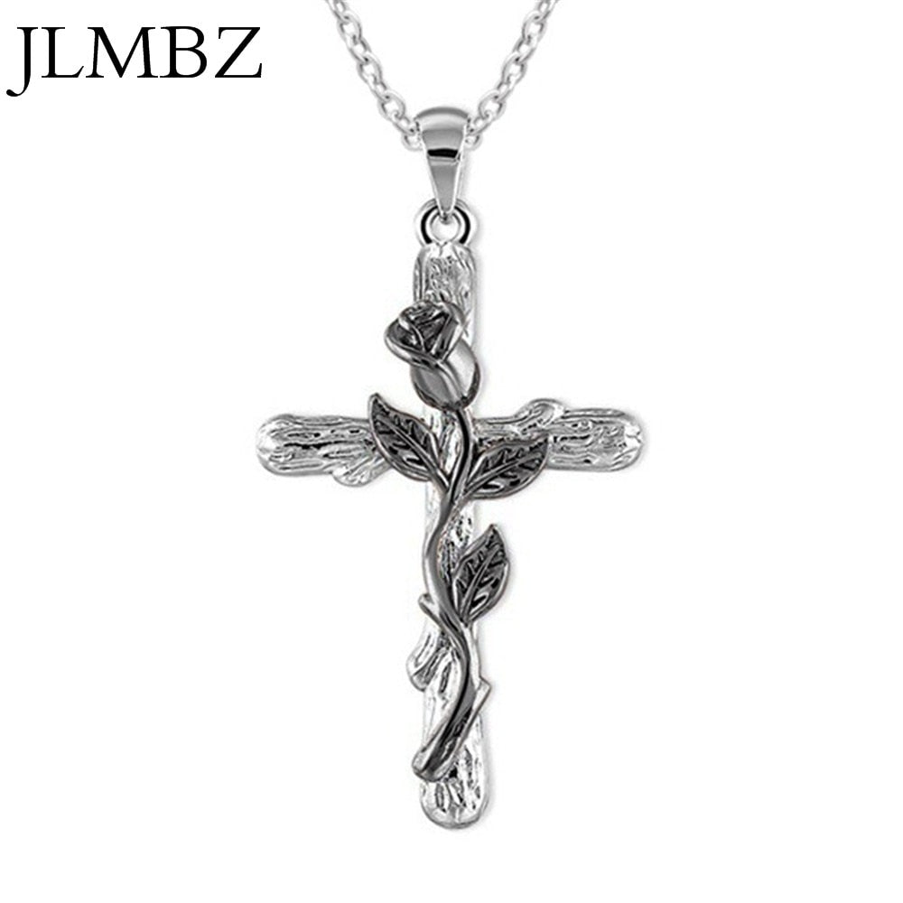 JLMBZ Leaf Jesus Cross Rose Necklace naszyjnik for Women Bijoux Femme kpop цепь на шею Classic Vintage чокер jewellery