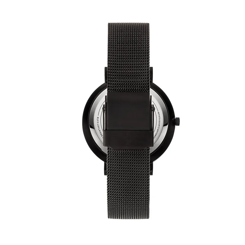 Silver Mesh Strap XOXO LOVE Story Bracelet Set with Black Feliz Mesh Wrist Watch and Crystal Cuff Bangle