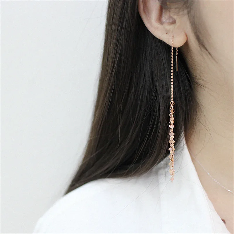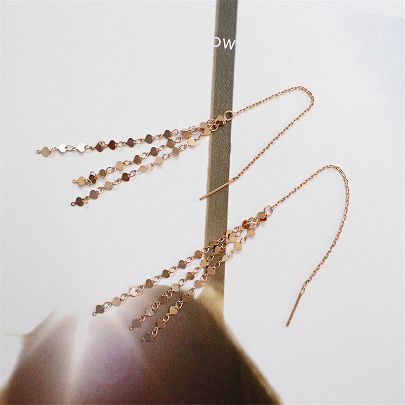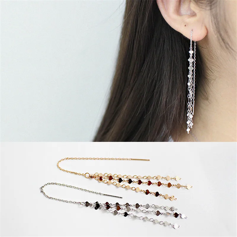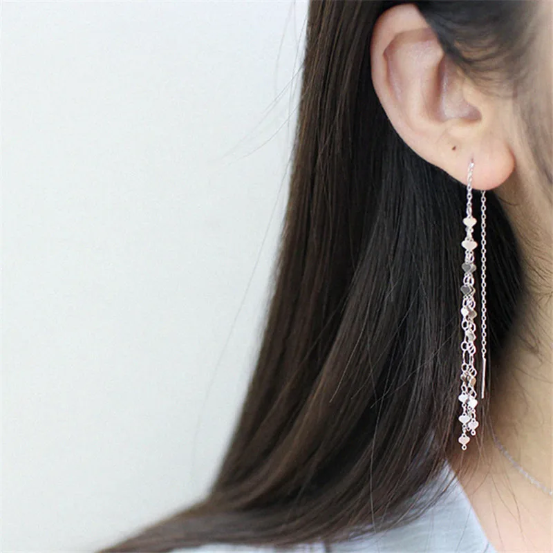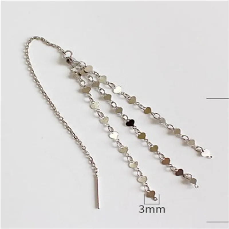 925 Silver Ear Line Long Earrings For Women Students New Simple Hearts Dangle Drop Earring Piercing Earrings