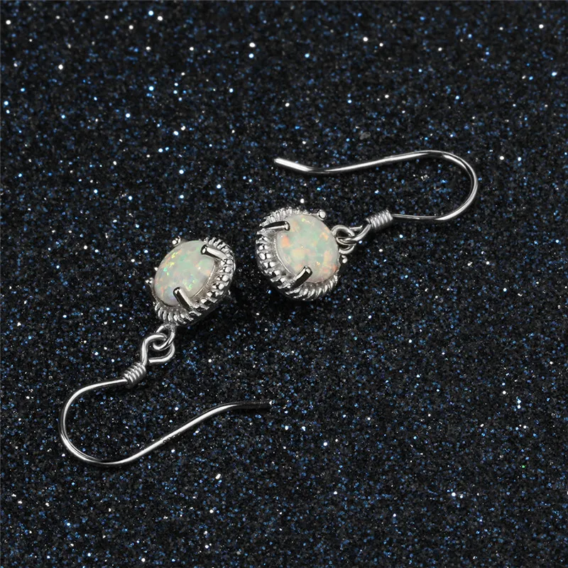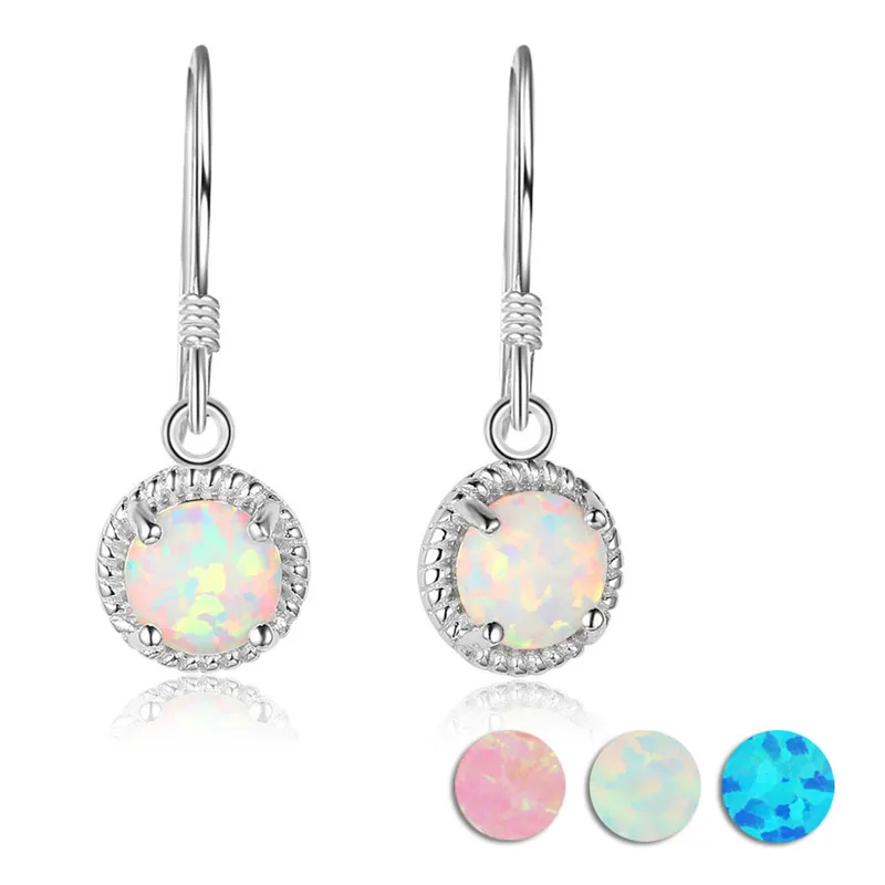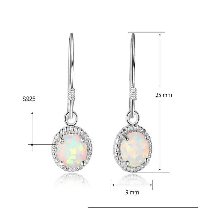 925 Sterling Silver Round White Blue Pink Opal Drop Earrings for Women Wedding Jewelry Gift Sterling Silver 925 Jewelry