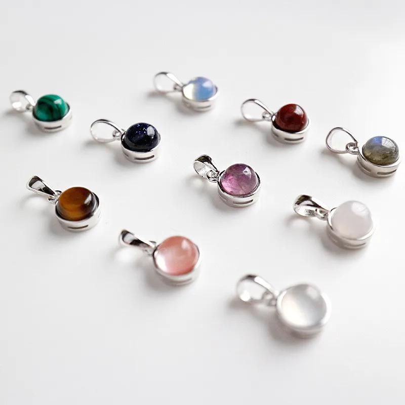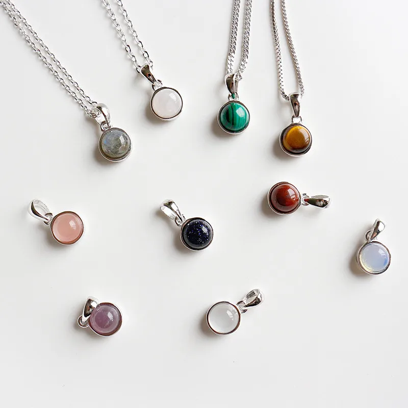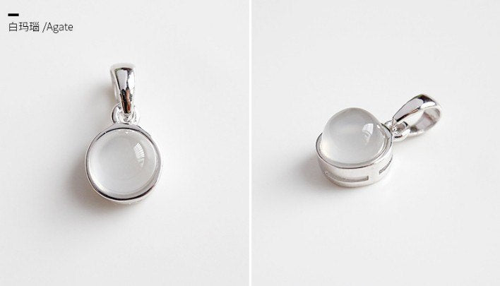 Authentic 925 Sterling Silver Necklace&Pendants For Women Customizable Round Crystal Agate Pendant Necklaces Collares