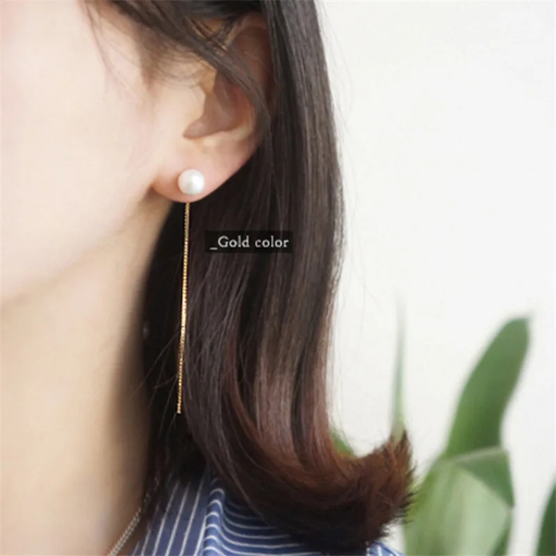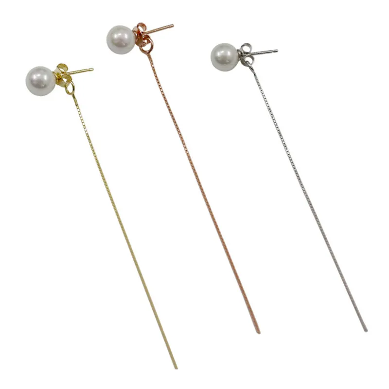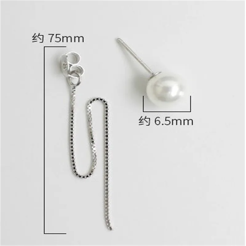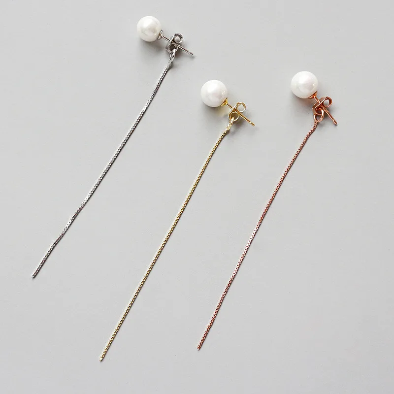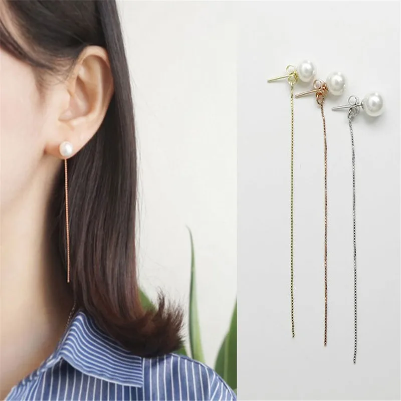 Fashion Long Chain Tassel Earrings For Women 925 Sterling Silver Box Chain Dangle Earring Pearl Jewelry boucle d'oreille