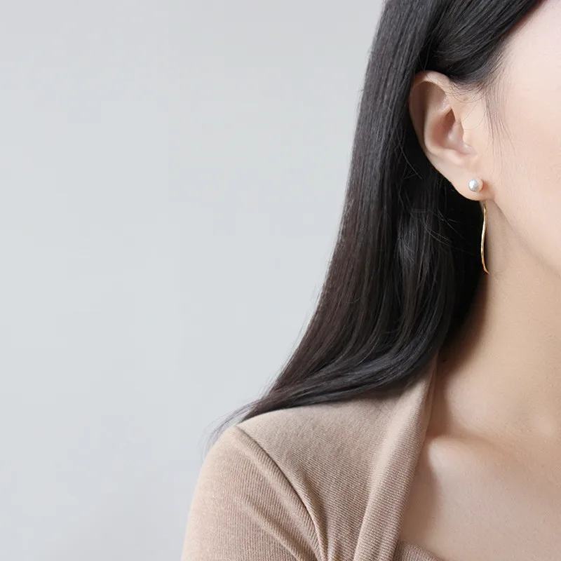 New Fashion Pearl Earrings 925 Sterling Silver S Shape Ear Line Stud Earring For Women Student bijoux en argent 925