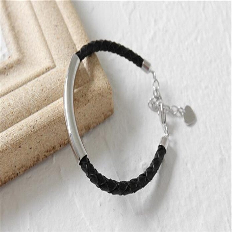 New Handmade Braided Leather Chain Bracelet&Bangles For Lovers 925 Sterling Silver Tube Bracelets Students Gifts Pulser