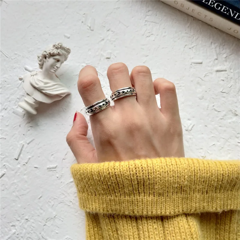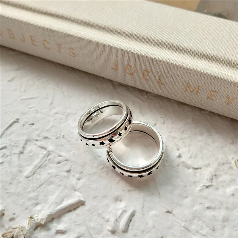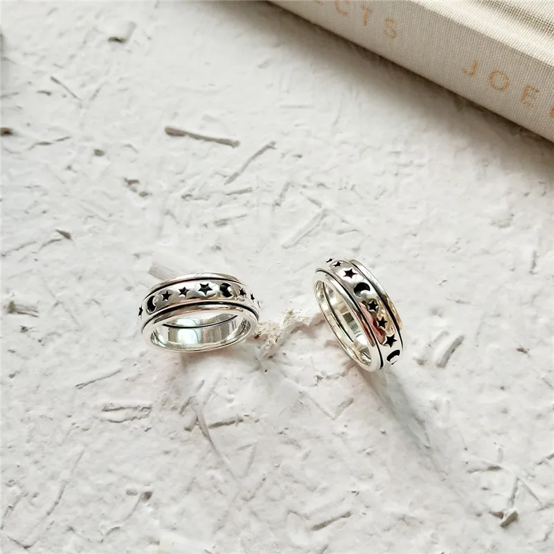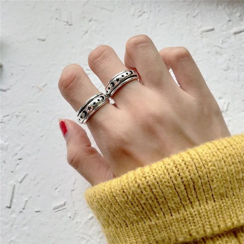 New Vintage 925 Sterling Silver Rings For Women Inl Moon Star Finger Ring Sterling Silver 925 Jewelry Bague Size 6 7 8